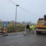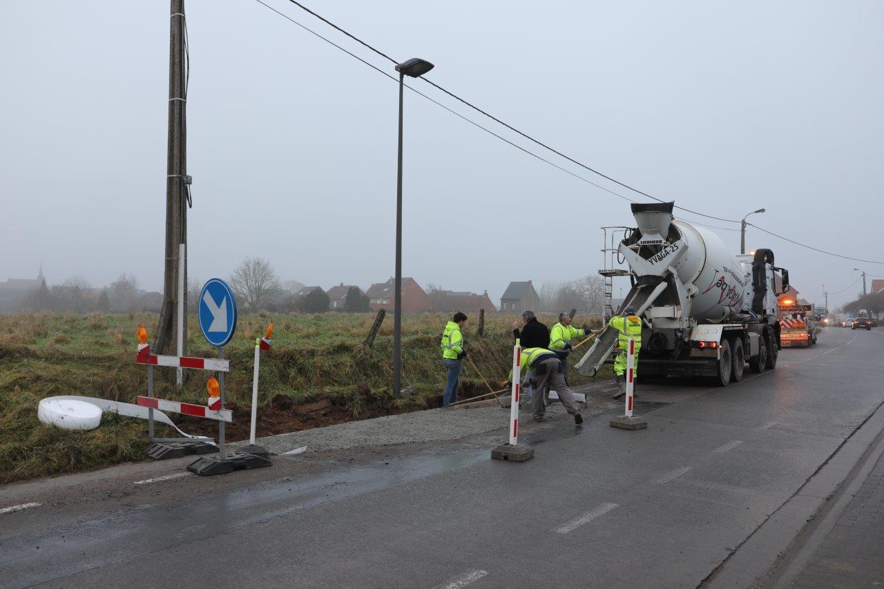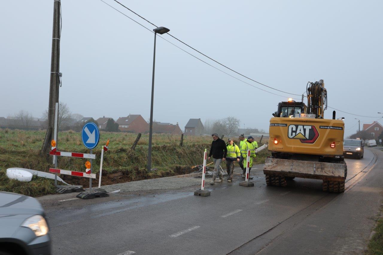 OUTER – Aannemer Norré-Behaegel is sinds vrijdagavond 14 januari aan het werk om de wegversmallingen/asverschuivingen in de Aardeweg te verwijderen. Aan deze obstakels gebeurden de laatste maanden talloze ongevallen.