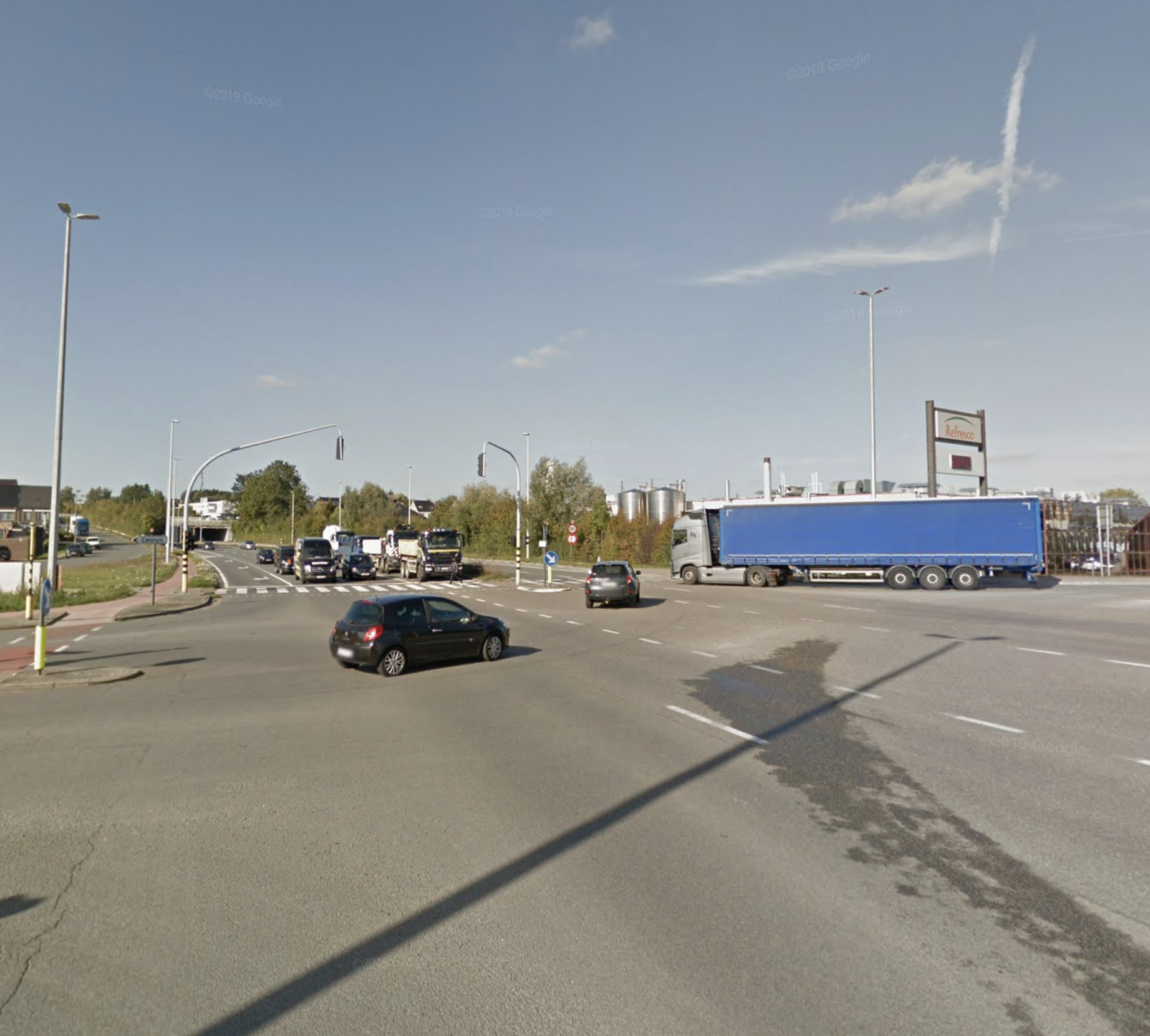 Aan het kruispunt ‘Refresco’ op de Koning Boudewijnlaan (N28) zijn afslagstroken voorzien met aparte pijlverkeerslichten. Op die manier kan het verkeer veilig links afslaan.