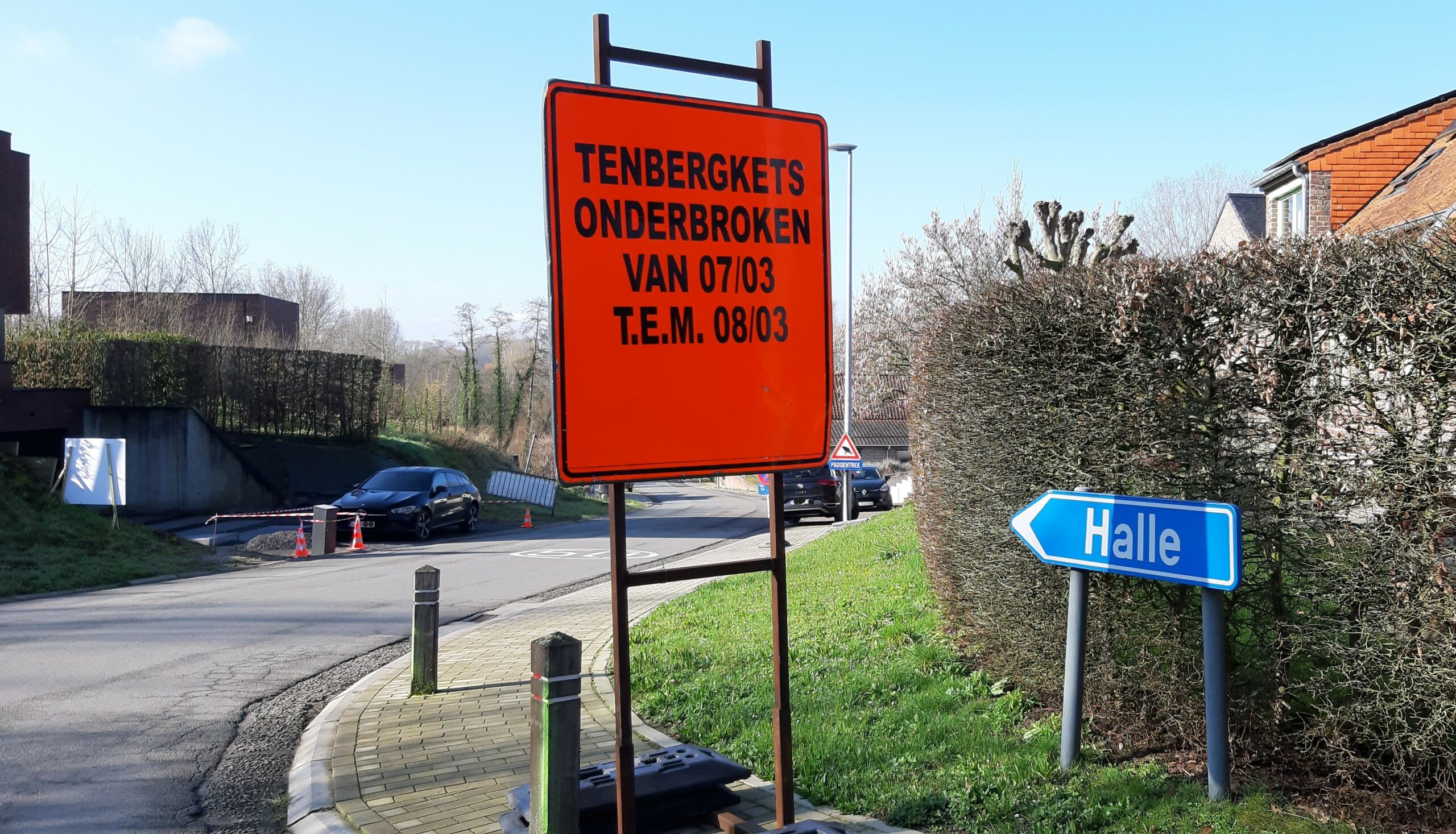Tenbergkets is gedurende die werken onderbroken voor het verkeer, dat een wegomlegging moet volgen. Deze loopt via Tenberg-Stenebrug-Kapellestraat-Gemeentehuisstraat-Halsesteenweg en via Halsesteenweg-Nieuwstraat-Kapellestraat-Stenebrug-Tenberg.