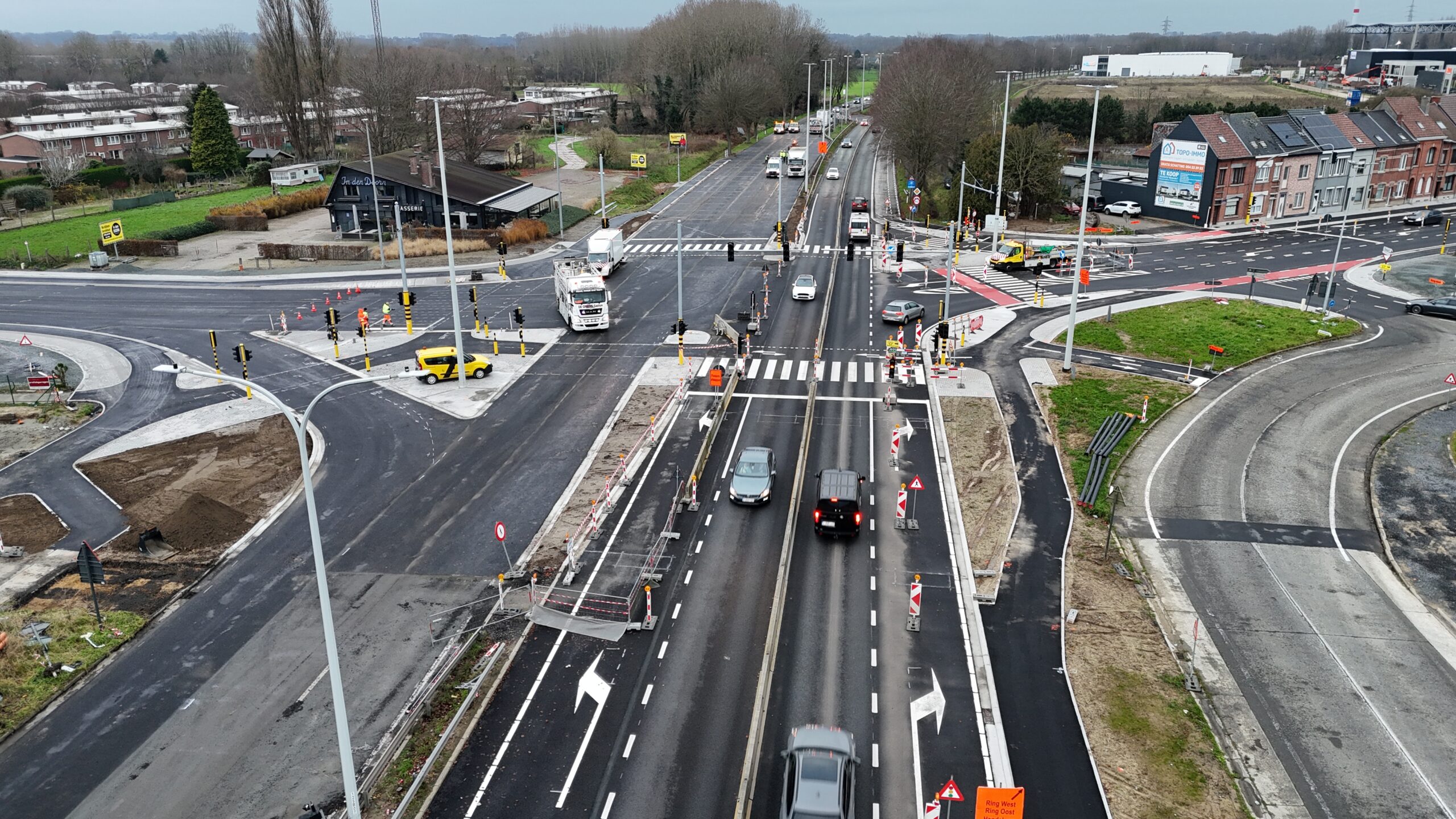 “We hopen, dat iedereen gelukkig zal zijn met het resultaat”, zegde ons Jef Schoenmaekers (woordvoerder Agentschap Wegen en Verkeer). “Sinds augustus is hier hard gewerkt om het kruispunt veiliger te maken. Momenteel leggen we de laatste hand aan de afwerkingen en op 13 december gaat het open, waardoor het verkeer in alle richtingen terug mogelijk is. Alleen de linker rijstrook op de Expresweg en de Koning Boudewijnlaan gaan we wel nog innemen, maar dat is gedaan op 20 december.”