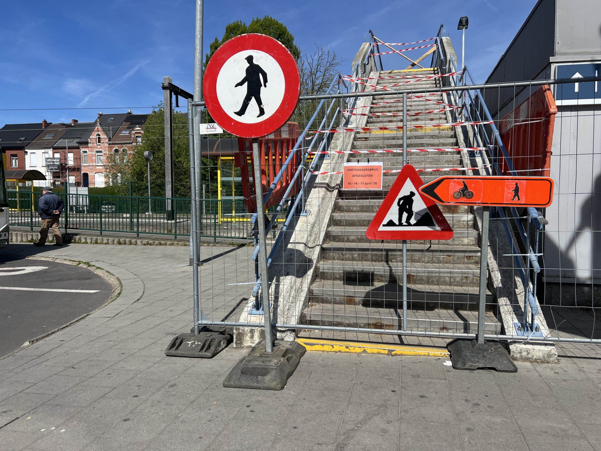 De brug is afgesloten tussen 6 uur en 22 uur. Je volgt best de omleiding voor voetgangers via de Fernand Tavernestraat, Weggevoerdenstraat en Stationsstraat. Ter plaatse is signalisatie voorzien.