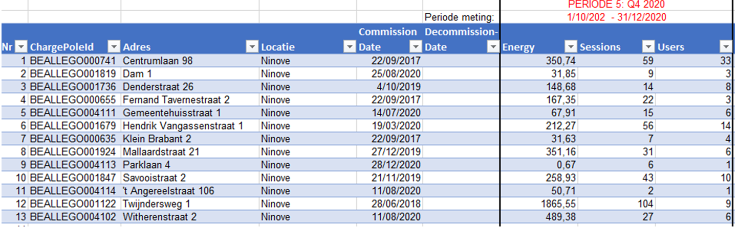 Inmiddels zijn er al verschillende geïnstalleerd in Ninove en deelgemeenten. “Uit de cijfers blijkt, dat geen enkele laadpaal er ongebruikt staat. Zelfs in de ’t Angereelstraat telden we 2 oplaadsessies. Al kan het altijd beter natuurlijk. De absolute topper is het oplaadpunt aan de Centrumlaan met 59 oplaadbeurten door 33 aparte gebruikers. Als we de evolutie bekijken, zien we het gebruik ervan toenemen.”