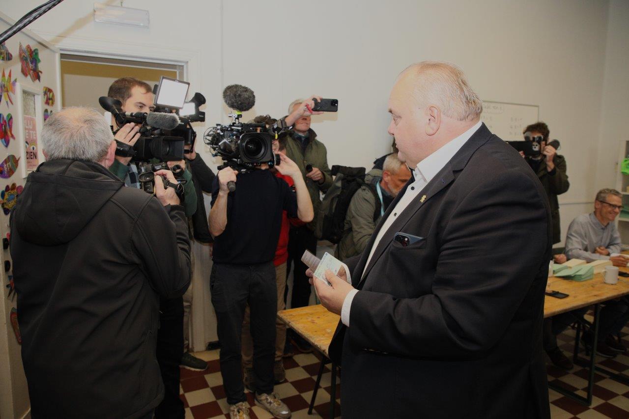 Het was zondagochtend om 8 uur al heel druk in het anders rustige Neigem aan de woning van Guy D’haeseleer (Forza Ninove). Cameraploegen en journalisten van lokale en nationale zenders en kranten wilden blijkbaar zijn gang naar de stembus in het schoolgebouwtje van Buitenwijs tot in de details vastleggen.