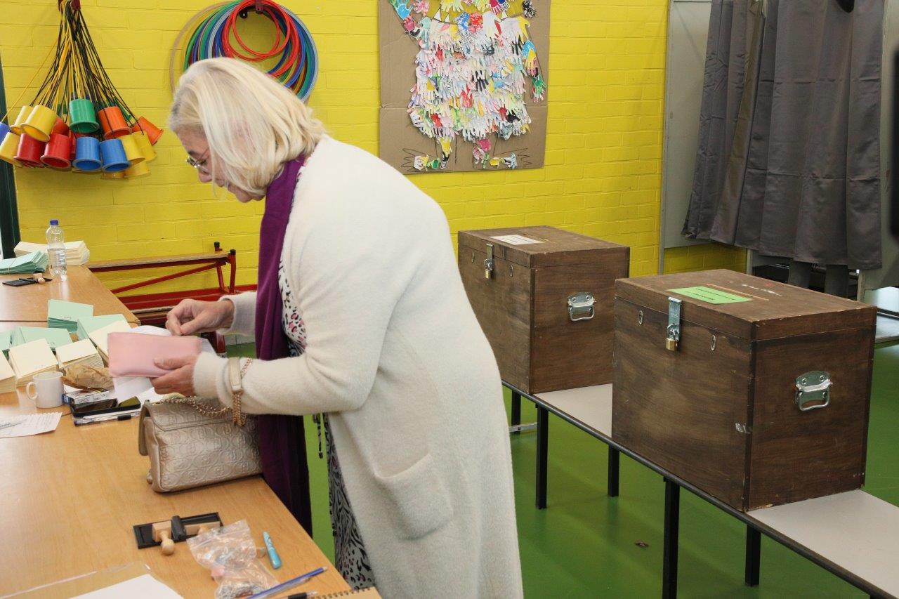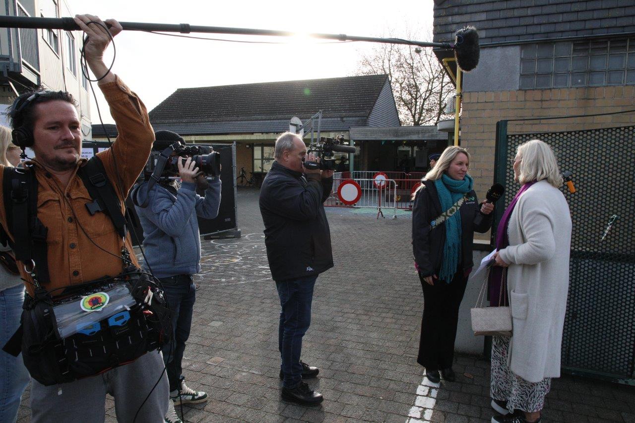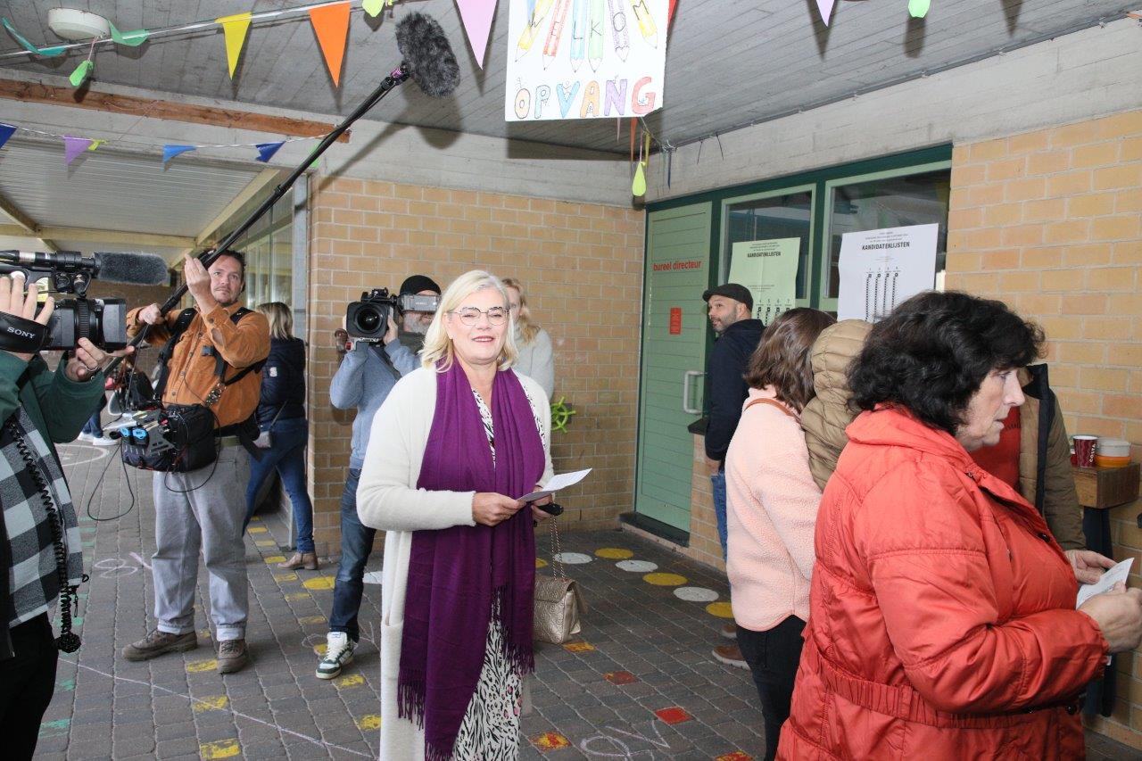 Even later zowat hetzelfde scenario: de mediabubbel had zich verplaatst naar de stedelijke basisschool De Hazelaar in Nederhasselt. Daar bracht burgemeester Tania De Jonge (Positief Ninove) eveneens haar stem uit onder het alziend oog van de camera’s.