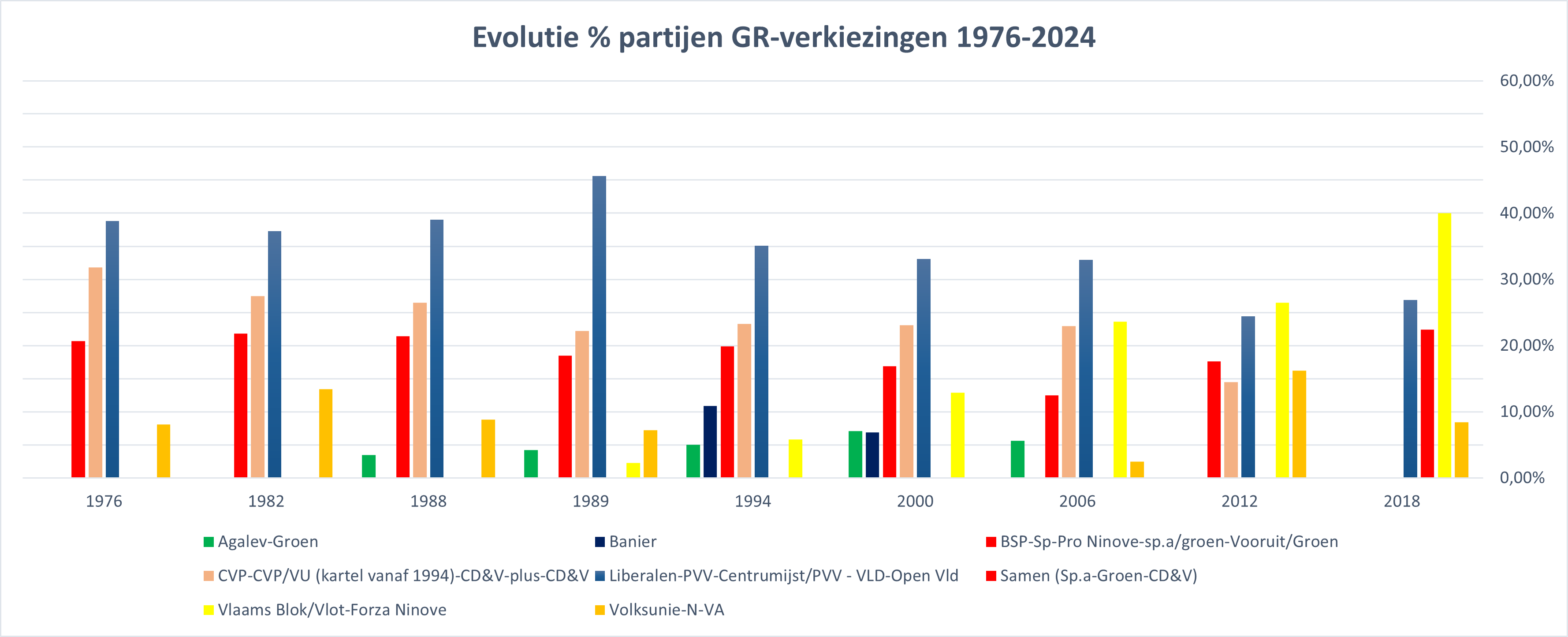 Vooruit-Groen was niet succesvol en behaalde met 14,9 % (5 zetels) minder dan de 17,6 % van 2012. Een vergelijking met 2018 is niet mogelijk omdat ze een alliantie vormden met de CD&V in Samen. Al haalde dit kartel met 22,4 % toen toch bijna 10 % minder dan de aparte partijen in 2012 (Vooruit-Groen 17,6 % en CD&V 14,5 %).