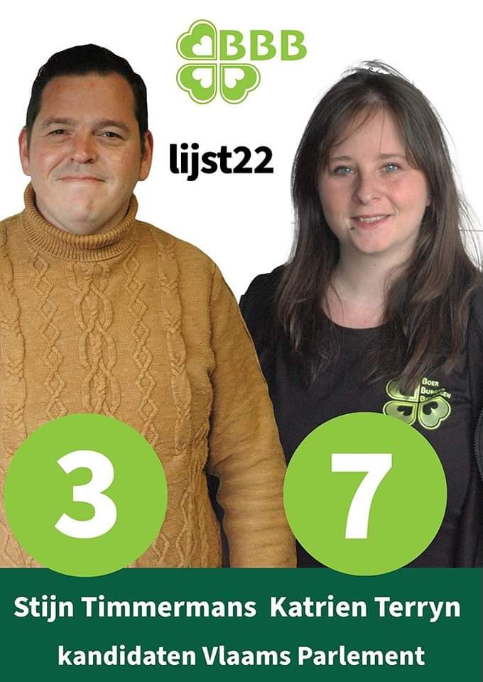 De BBB is een Vlaamse politieke partij, de tegenhanger zeg maar van de Nederlandse BoerBurgerBeweging. Op de valreep kregen we nog een persbericht binnen van Stijn Timmermans. Hij staat op de 3de plaats van lijst 22, de BBB Oost-Vlaanderen, voor het Vlaams parlement.