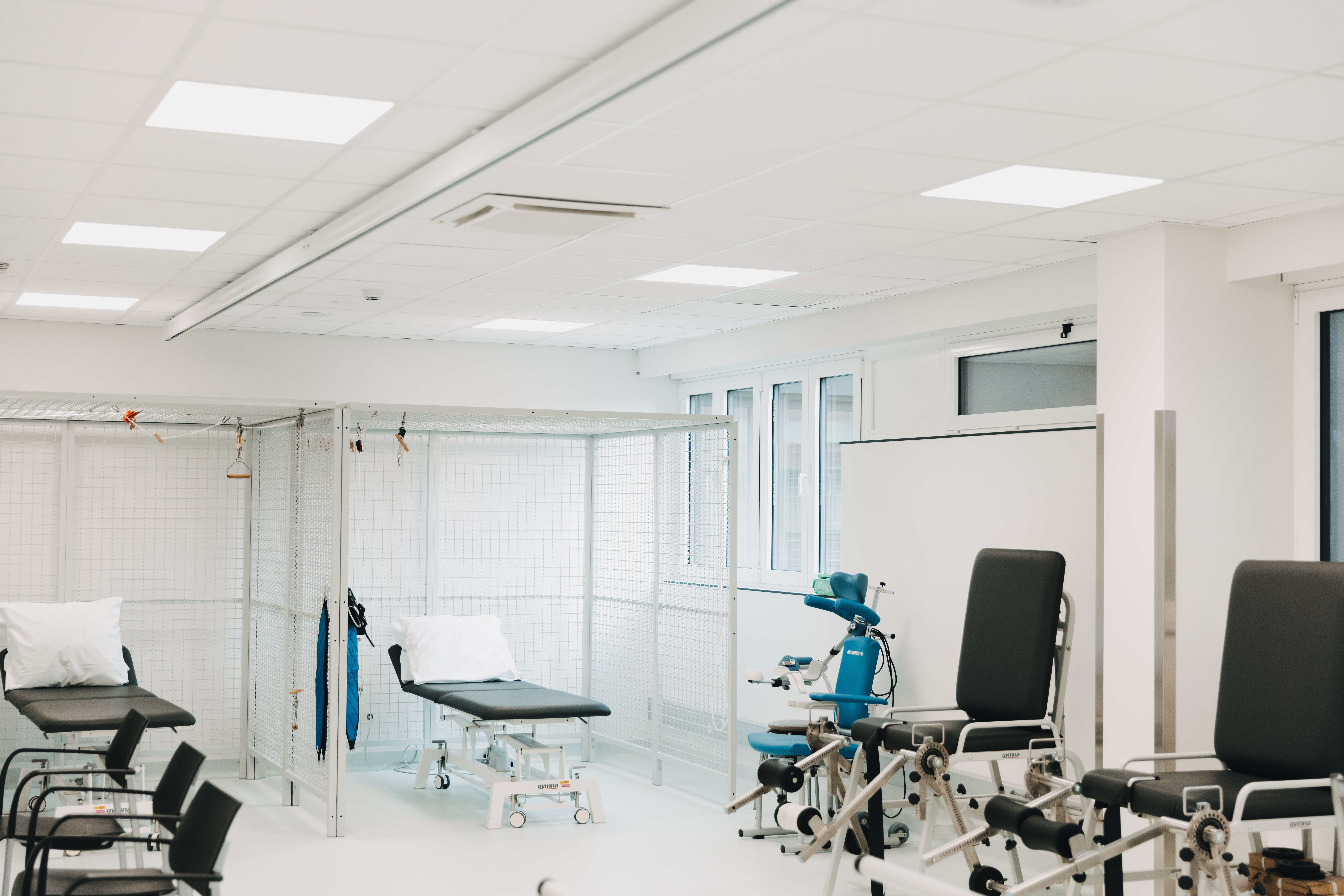 De afdeling beschikt over een revalidatiezaal voor individuele en groepstherapieën. Patiënten ontvangen een op maat gemaakt revalidatieschema met oefeningen, gericht op beweeglijkheid, spierkracht, uithoudingsvermogen, coördinatie en zelfredzaamheid. De revalidatiezaal bevat tevens een ergoruimte, die door een mobiele wand kan worden gescheiden voor veelzijdig gebruik.