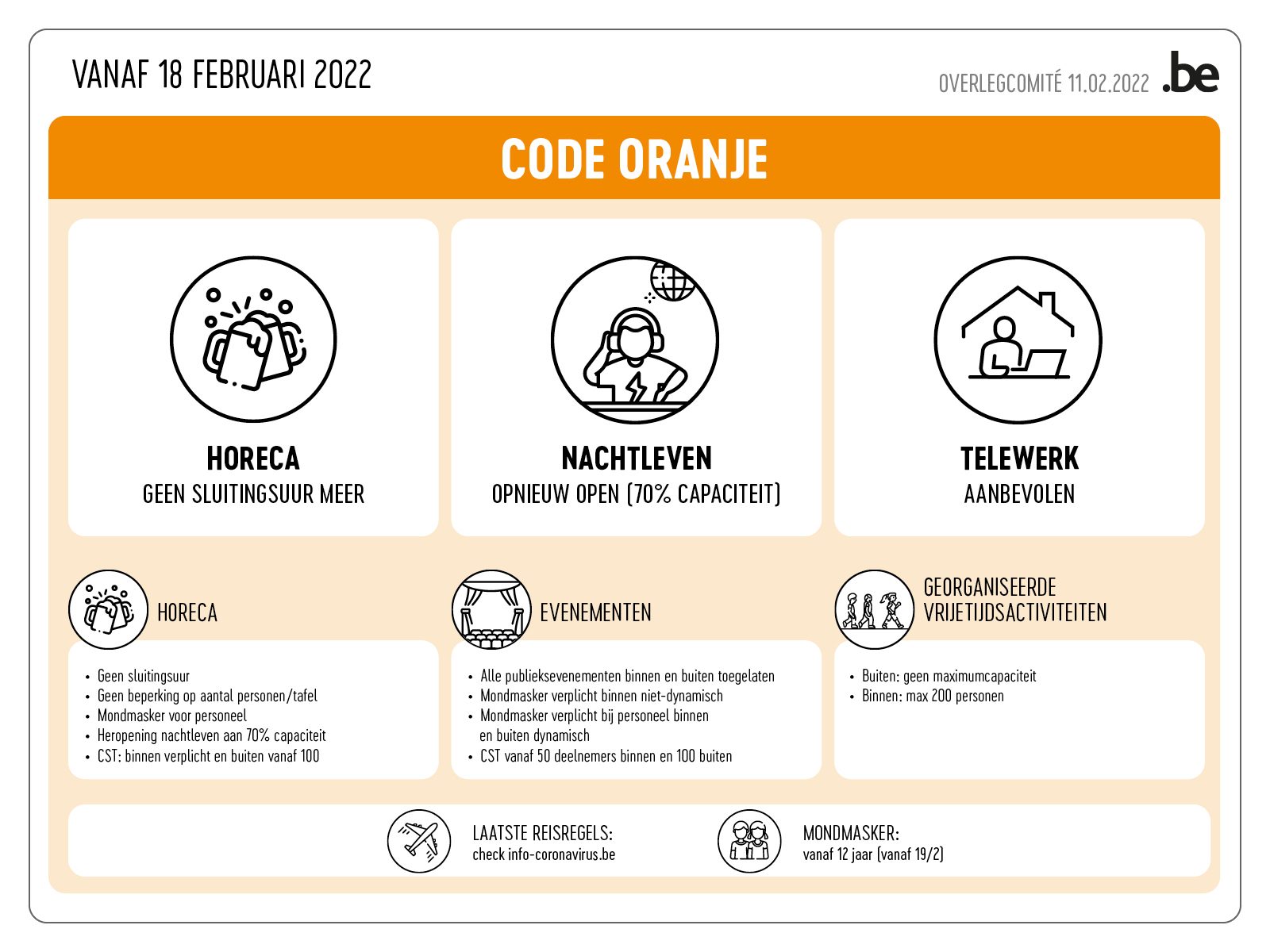 ALGEMEEN – Door de overgang naar code oranje op de corona-barometer, kunnen vanaf vrijdag 18 februari een aantal maatregelen op de schop.