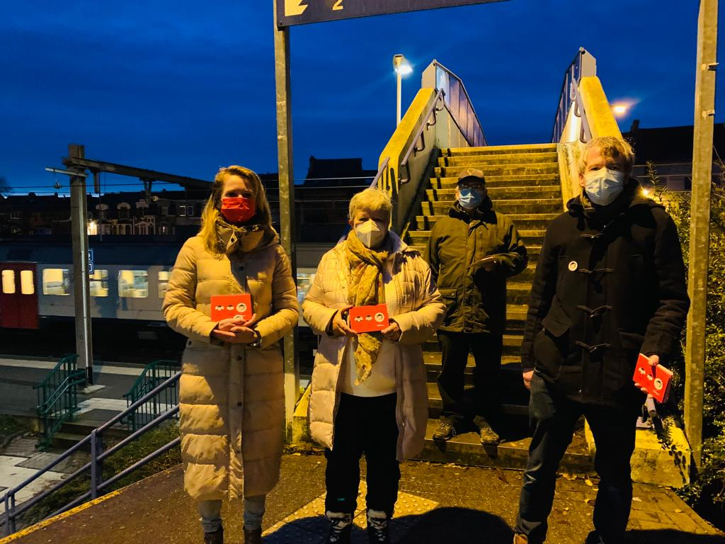 NINOVE – De lokale afdeling van Vooruit voerde vrijdag 26 november actie aan het station. De leden, waaronder schepen Katie Coppens, wilden het geweld tegen vrouwen onder de aandacht brengen.