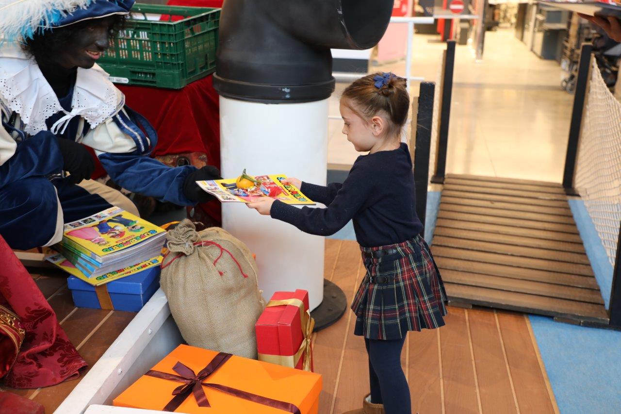 Verschillende kinderen hadden een mooie tekening of hun verlanglijstje gemaakt om aan de Sint te overhandigen. Als aandenken aan het bezoek kreeg iedereen een boekje en snoepjes van de pieten.