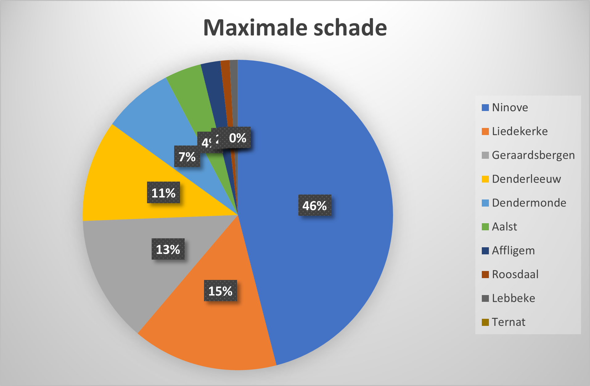 In de Dendervallei zou de schade in deze omstandigheden oplopen tot meer dan € 1 miljard. Voor Ninove alleen al kan dat een half miljard bedragen; in Liedekerke, Geraardsbergen en Denderleeuw meer dan € 100 miljoen.