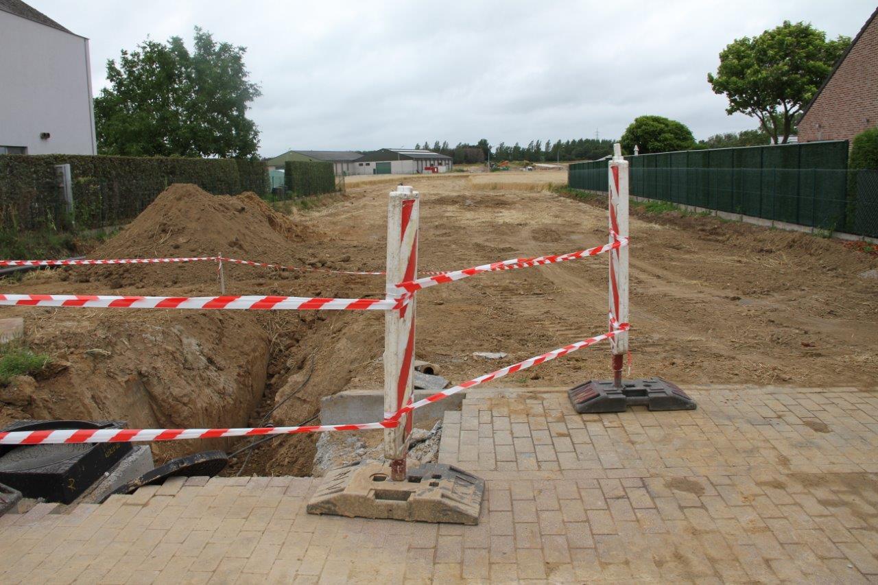 Inmiddels zijn de rioleringen aangelegd, samen met de grachten rondom het terrein. Terwijl de archeologen bezig zijn aan de laatste opgravingen gaan de werken aan een stevig tempo verder.