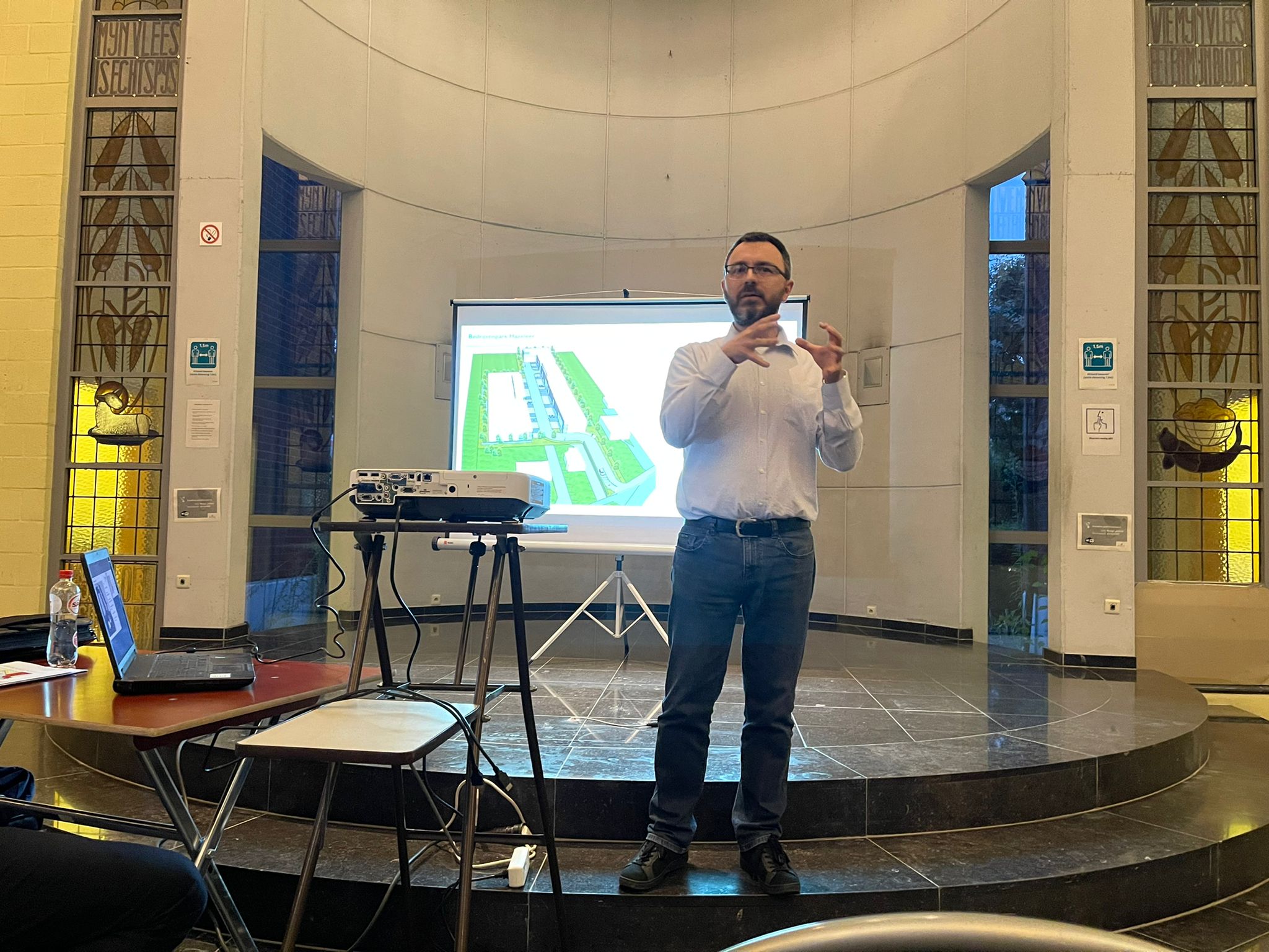 Na een korte inleiding door burgemeester Tania De Jonge (Open VLD) en schepen voor ruimtelijke ordening Katie Coppens (Samen), nam de architect het woord om de plannen toe te lichten.
