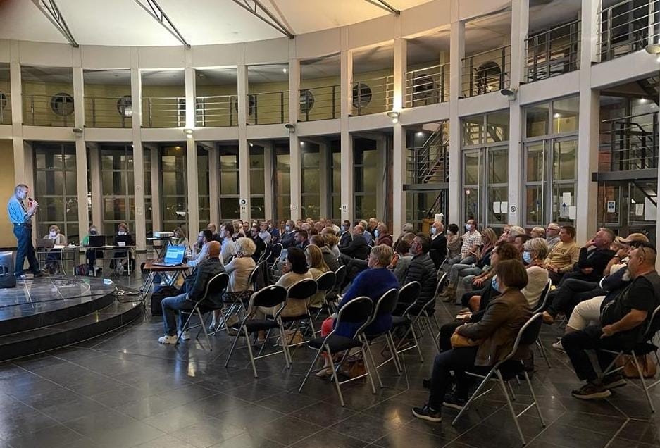 De uitnodiging voor deze infoavond viel pas op 21 september in de bus van de omwonenden. Desondanks zat het buurthuis Berdam in Ninove goed vol. Een late oproep aan alle Okegemnaars van het actiecomité ‘Hou Okegem leefbaar’ om zich te laten horen, bracht heel wat volk op de been.