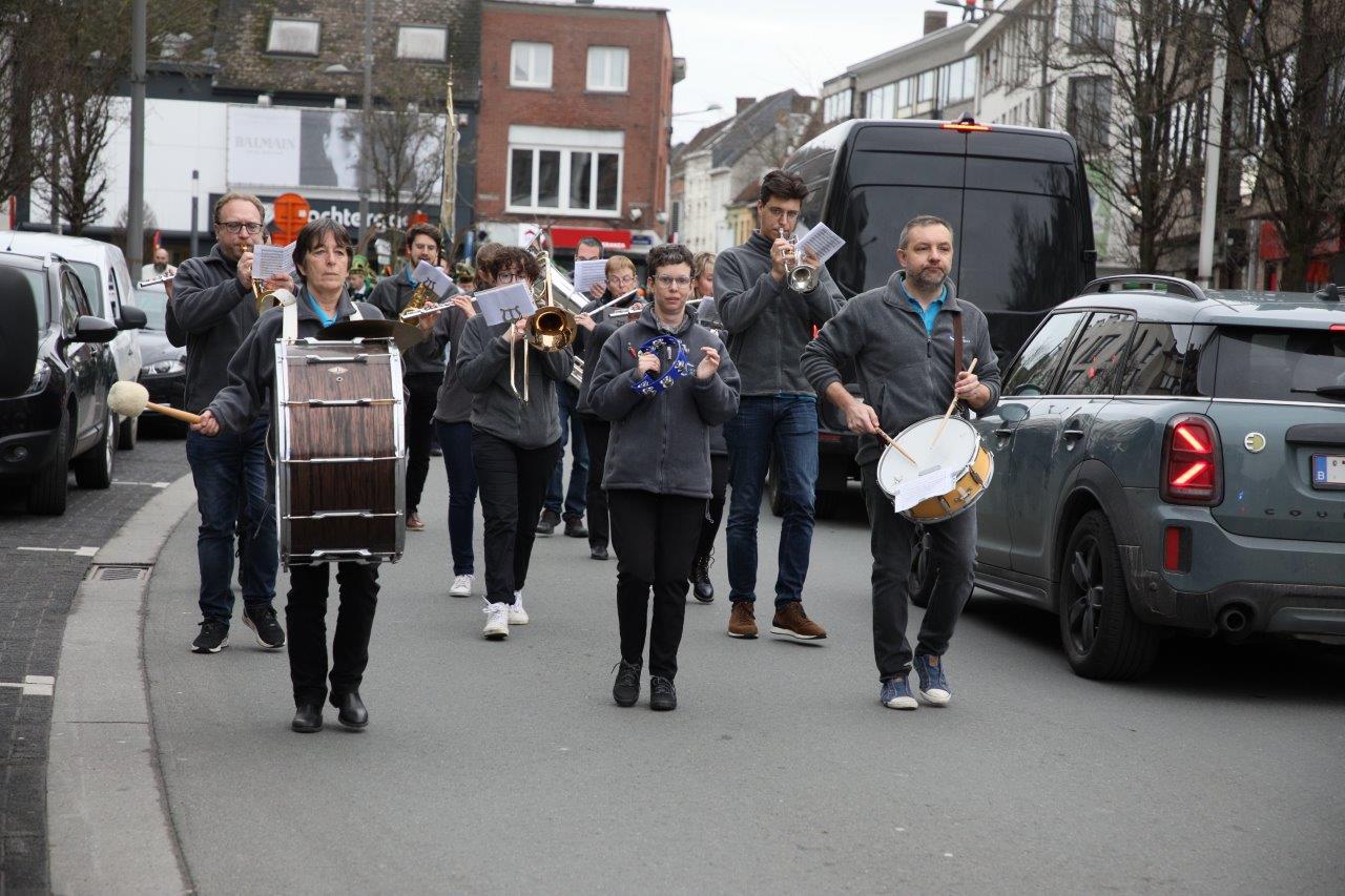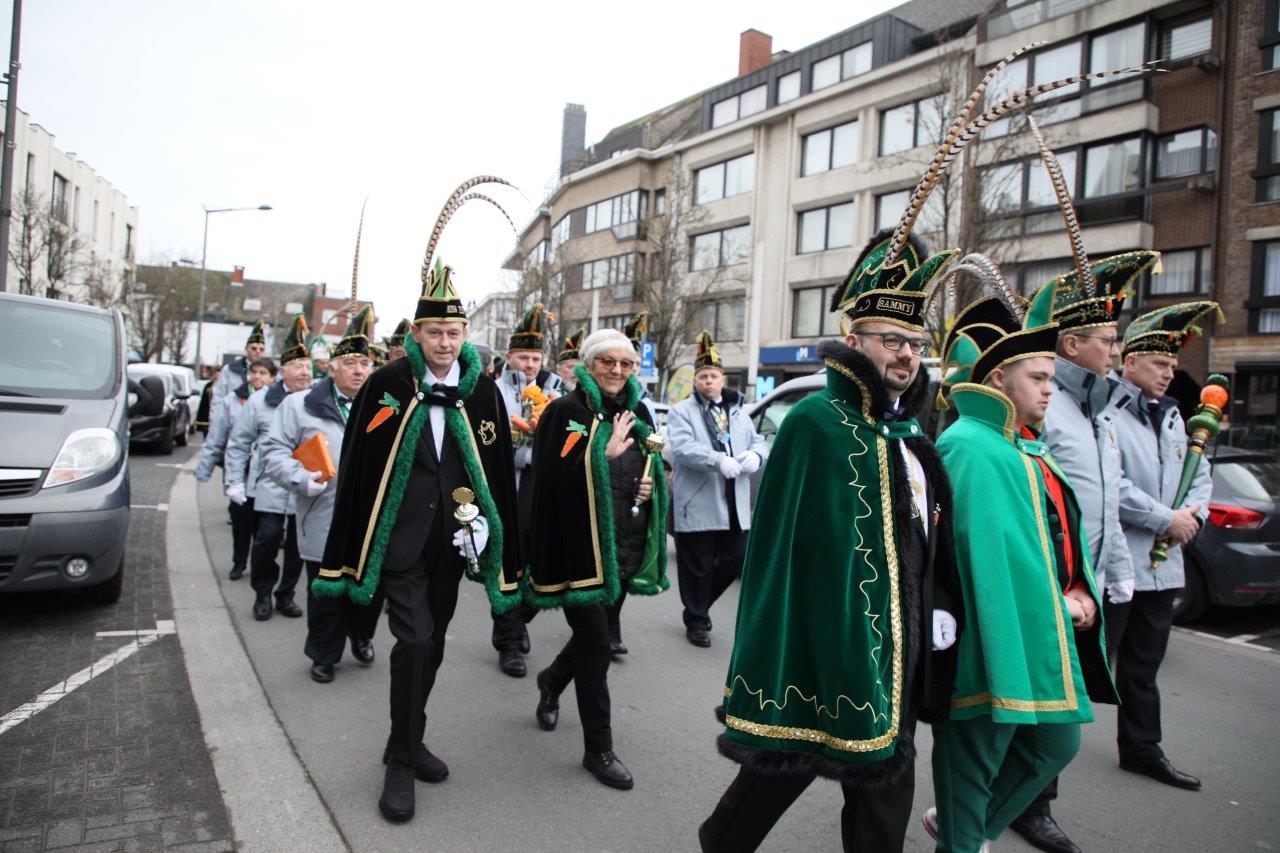 Voorafgaand aan de zitting had een optocht plaats met fanfare en pompierwagens naar het Wortelmanneken, waar bloemen zijn neergelegd. Op die manier was de carnavalssfeer al aangewakkerd in het centrum.