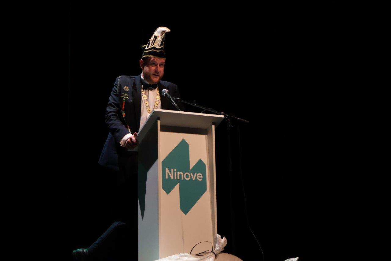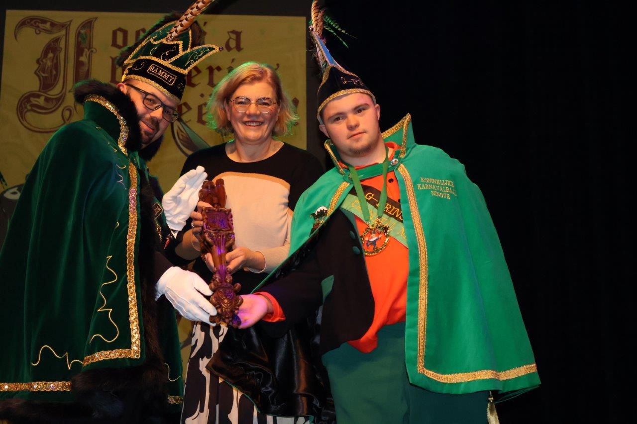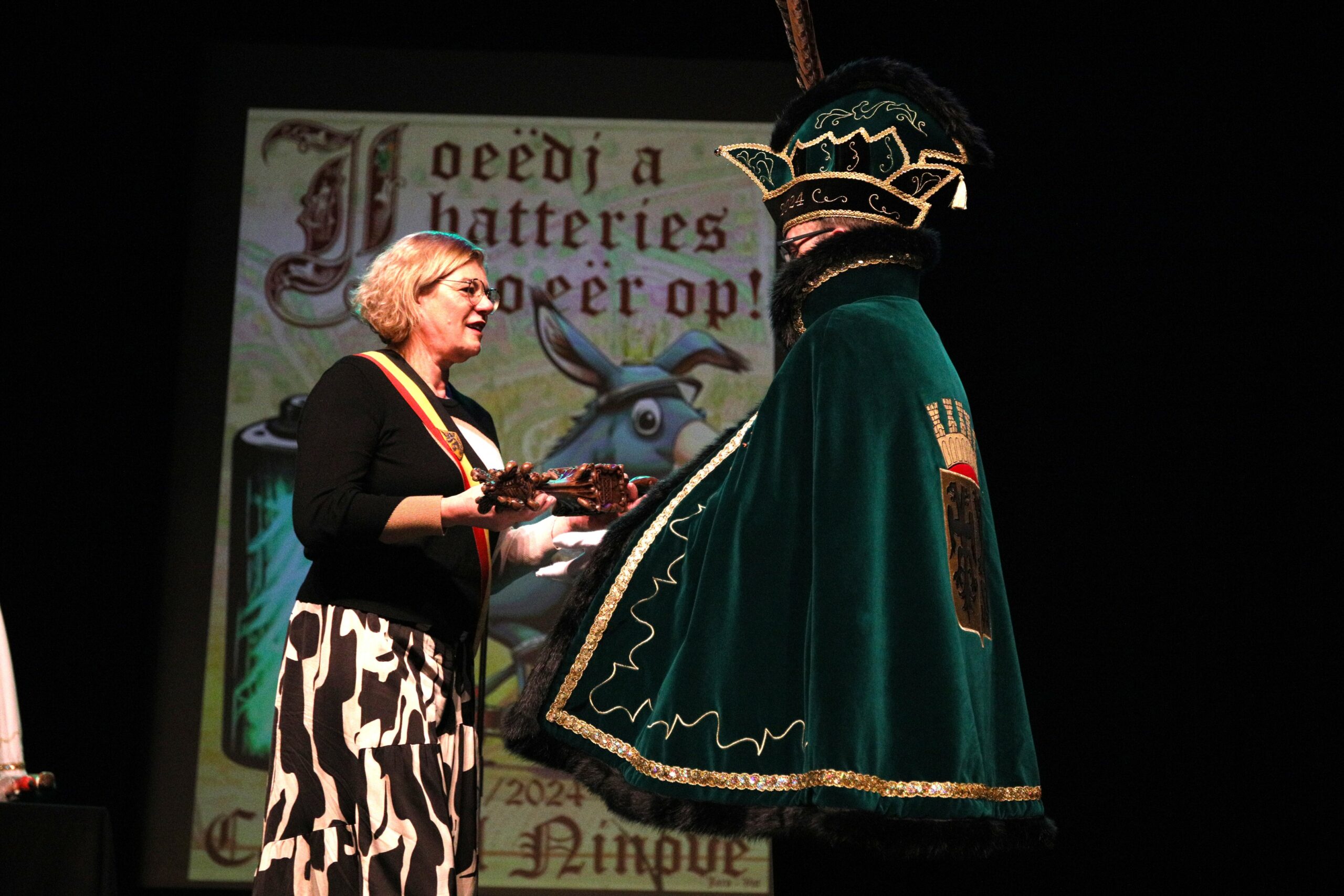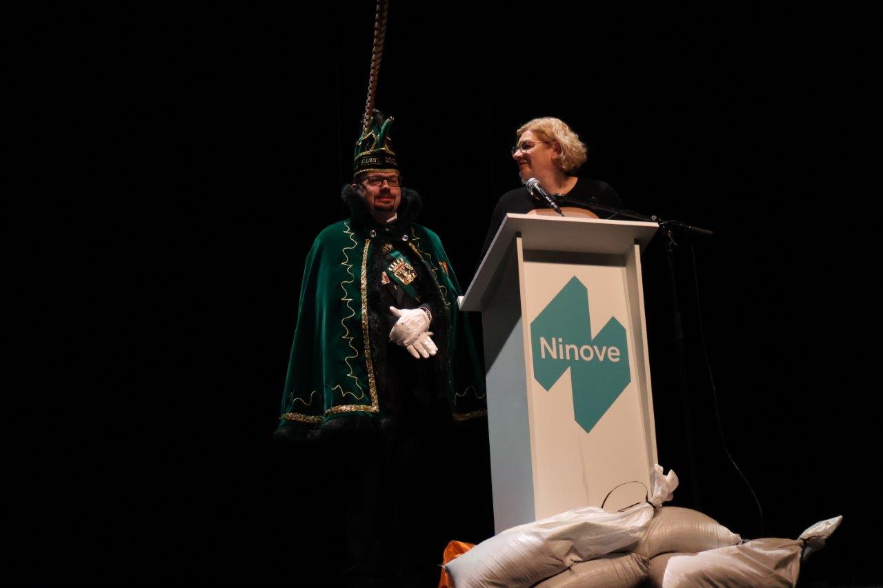 NINOVE – Burgemeester Tania De Jonge overhandigde zaterdag 10 februari tijdens de machtsoverdracht in het cc De Plomblom symbolisch de sleutels van de stad aan prins Sammy.