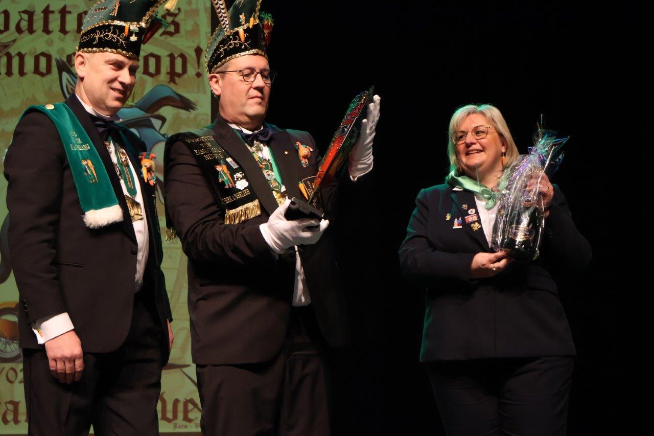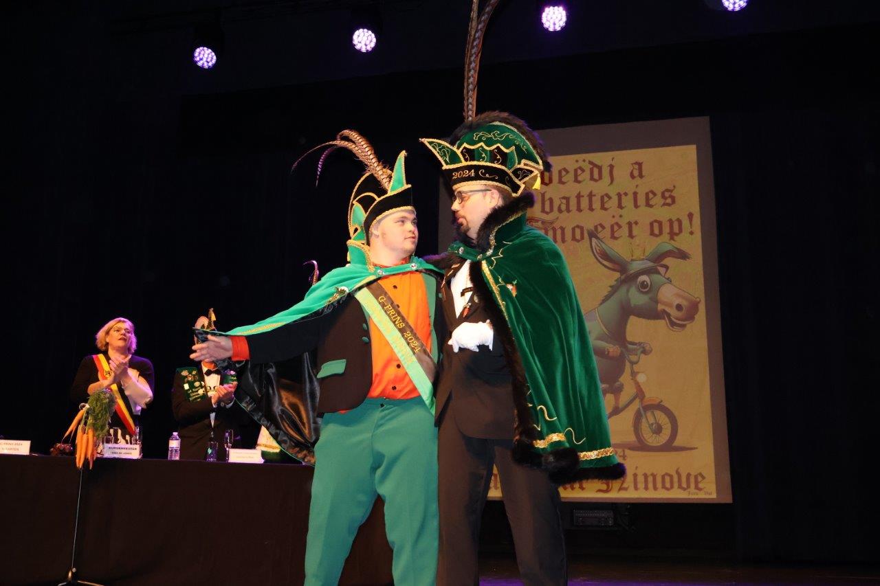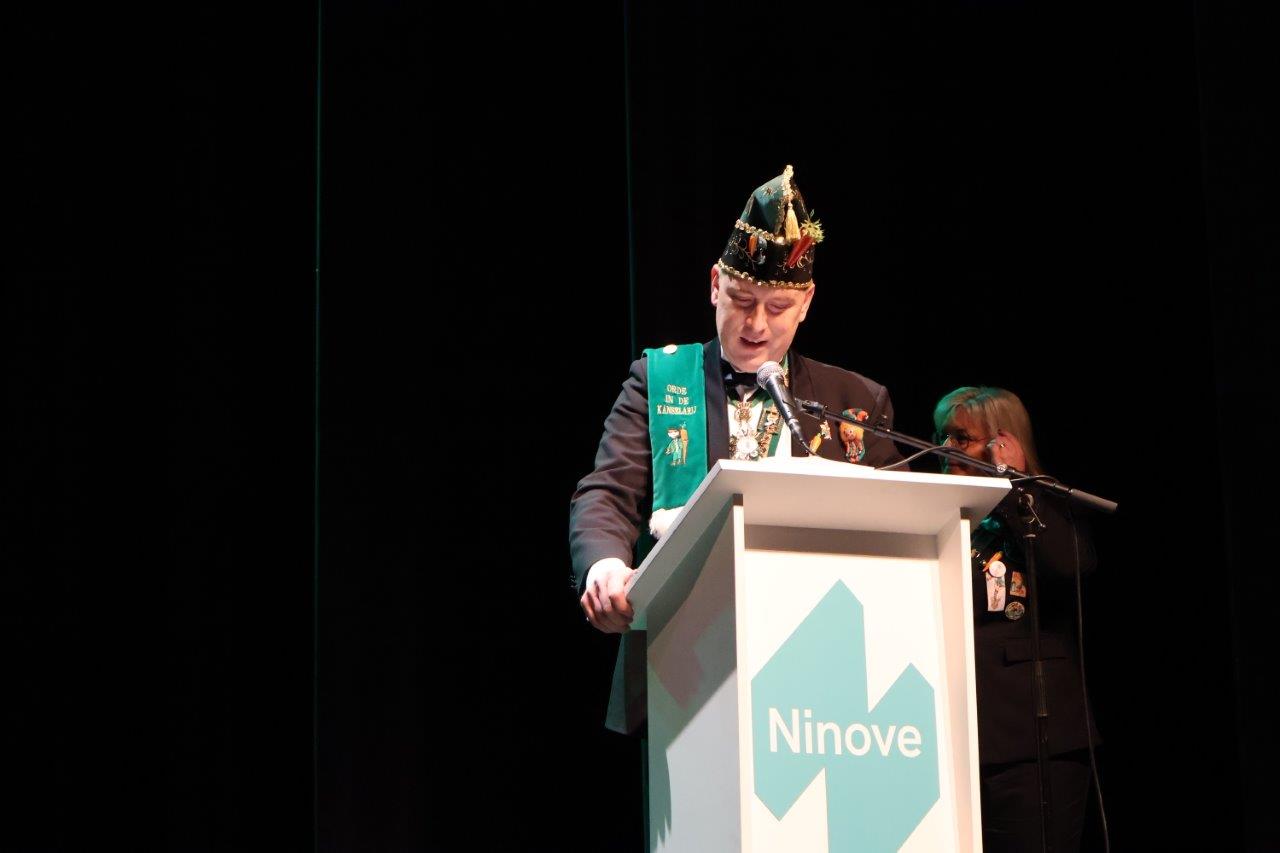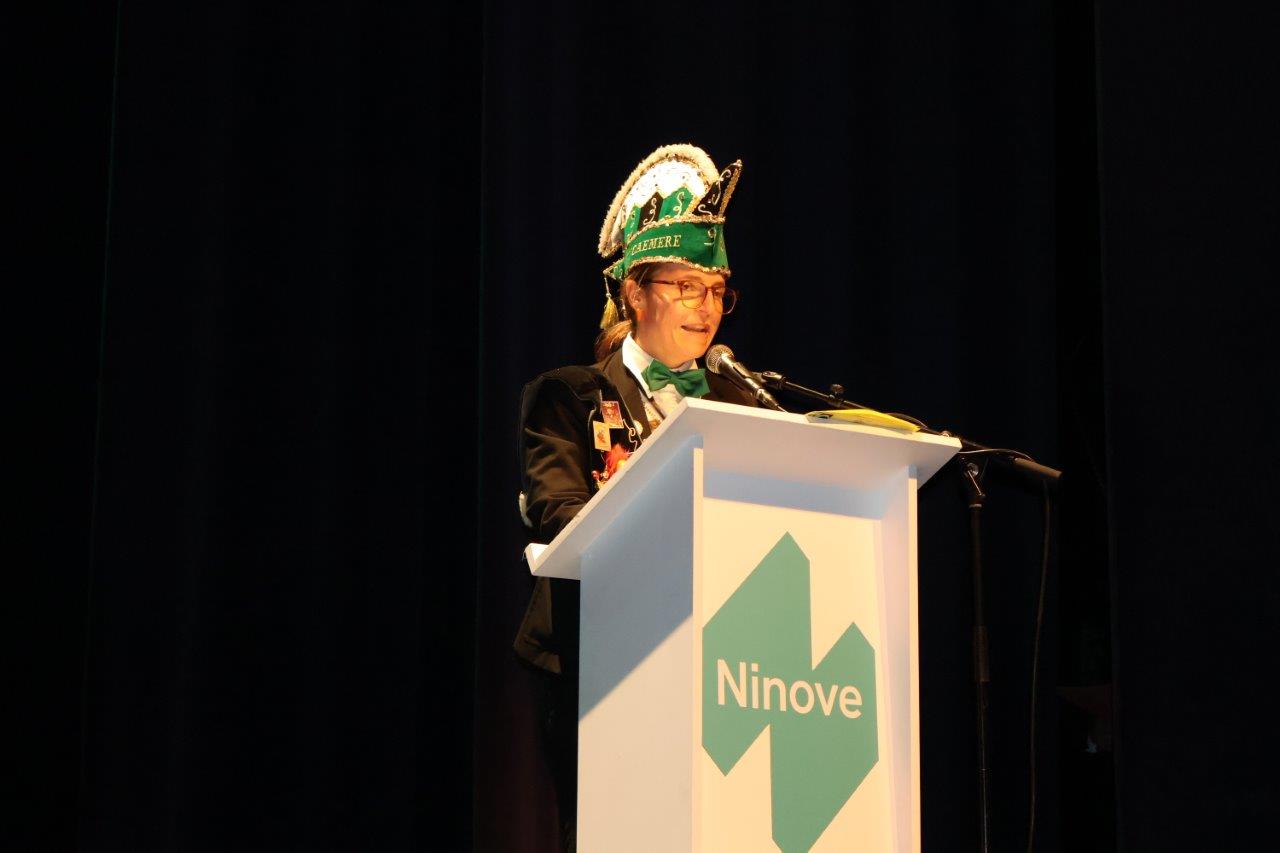 NINOVE – Burgemeester Tania De Jonge overhandigde zaterdag 10 februari tijdens de machtsoverdracht in het cc De Plomblom symbolisch de sleutels van de stad aan prins Sammy.