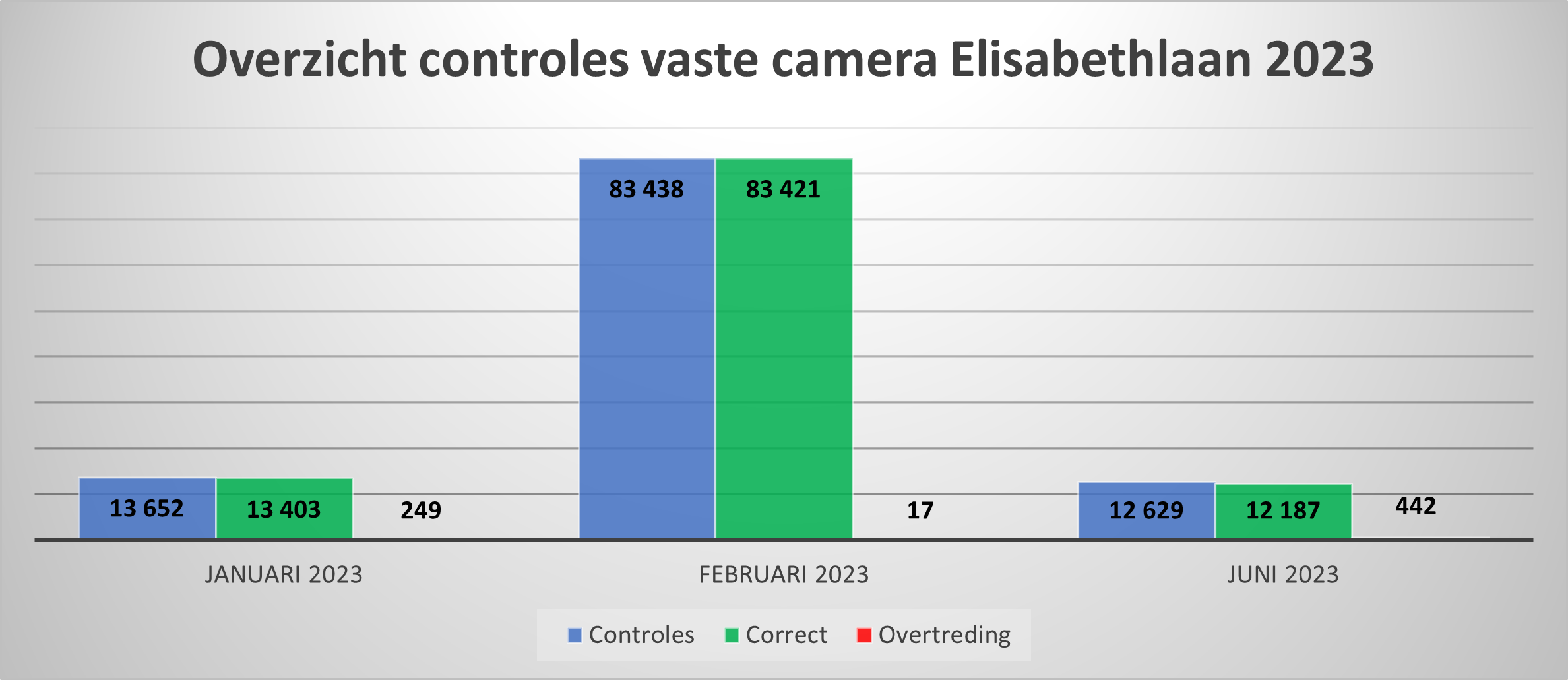 12.629 voertuigen passeerden de vaste flitscamera aan de Elisabethlaan; 442 ( 3,50%) sneller dan de toegelaten 50 km/uur.