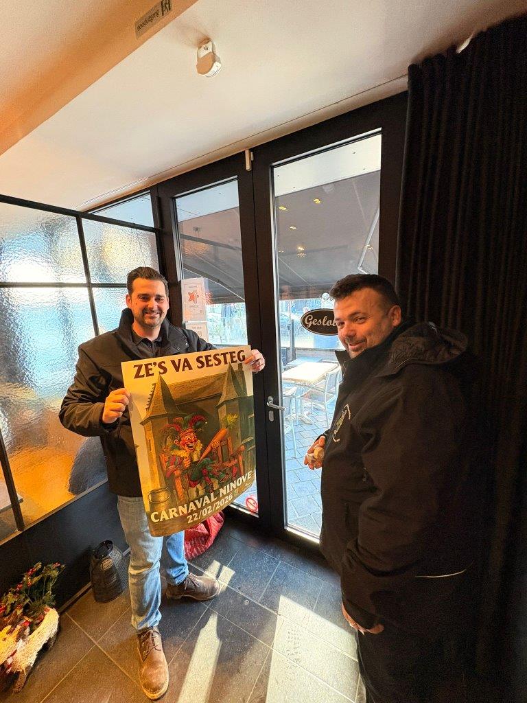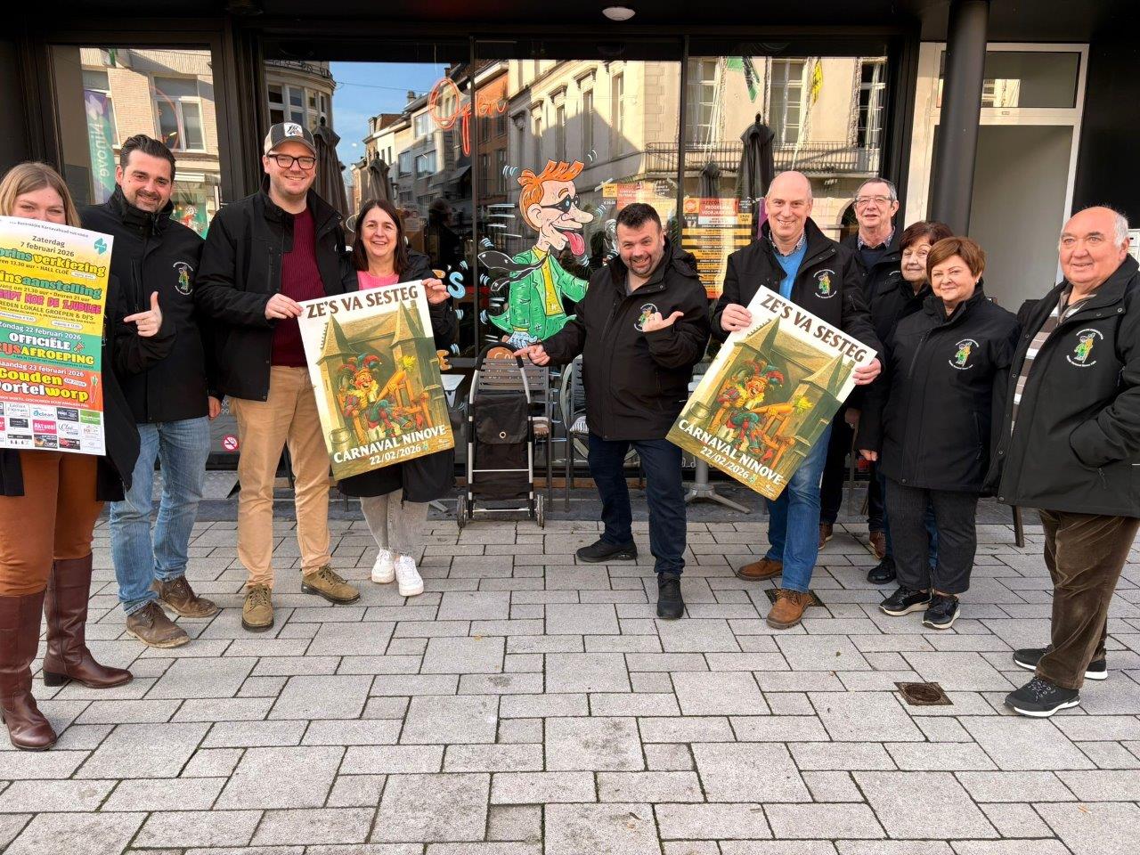 NINOVE –De Koninklijke Karnavalraad ging zaterdag 17 januari op stap in het stadscentrum om de carnavalsaffiche 2026 te bedelen in de handels- en horecazaken.