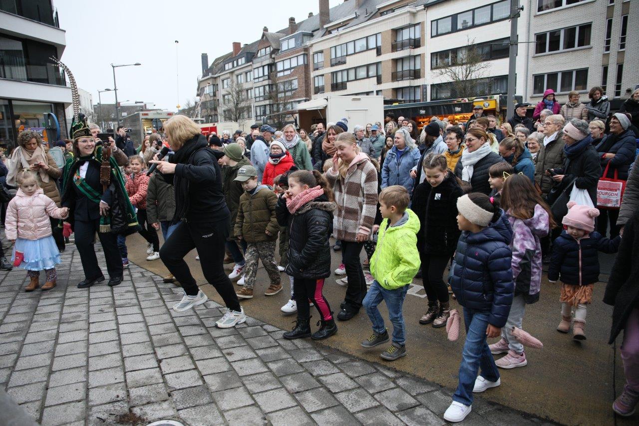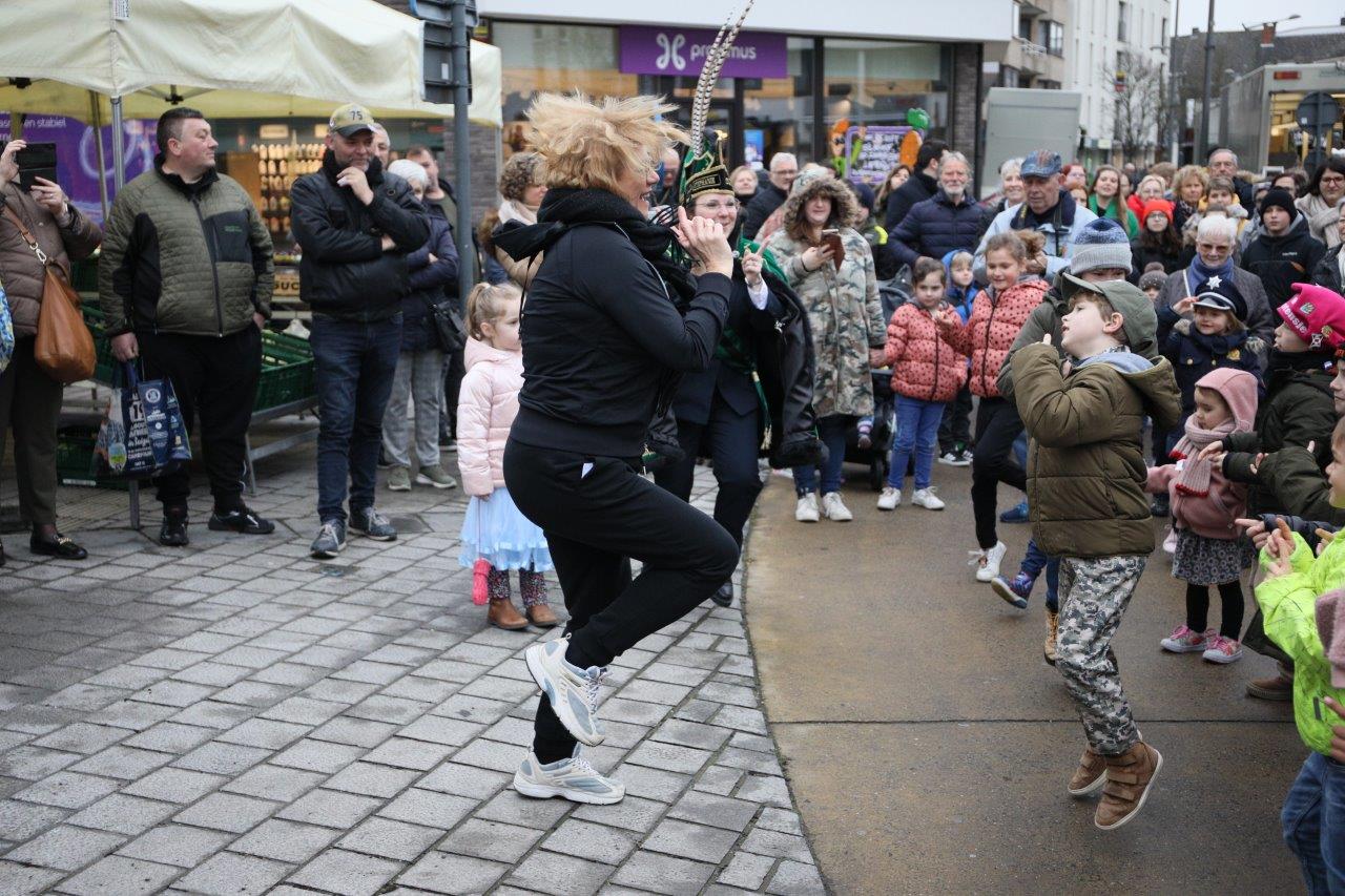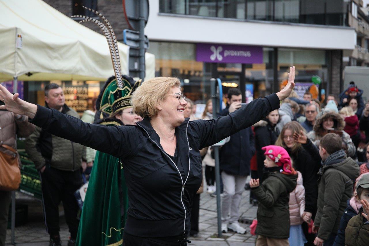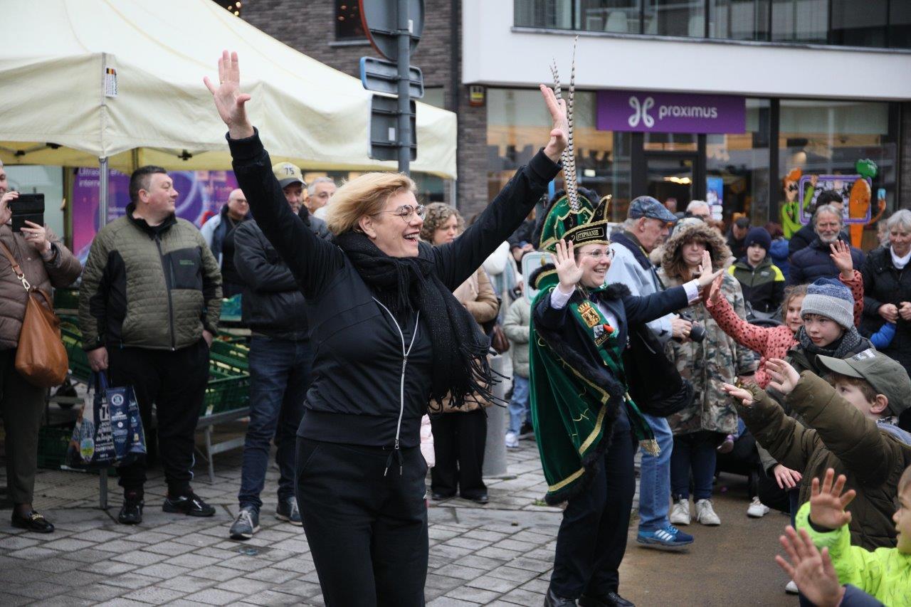 NINOVE – De marktgangers waren dinsdag 21 februari getuige van een ‘specialleken’: burgemeester Tania De Jonge, die dansles gaf aan de leerlingen van prins Stephanie.
