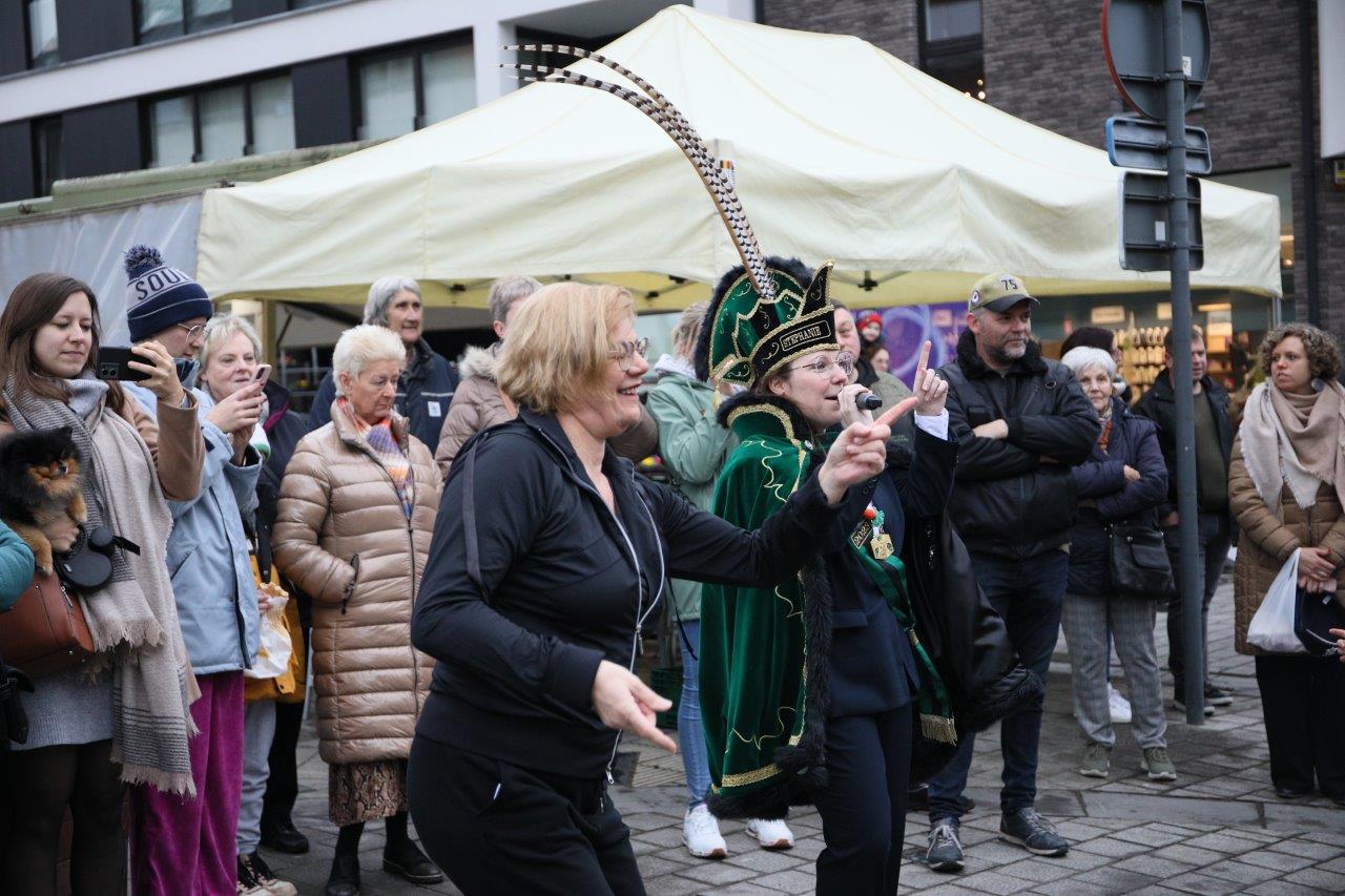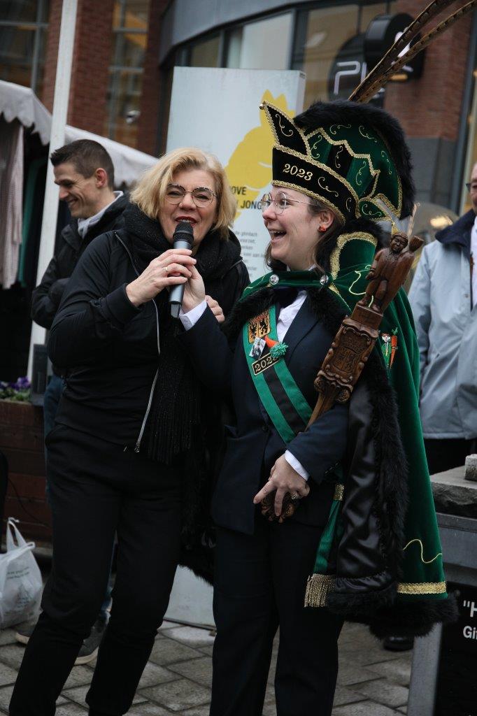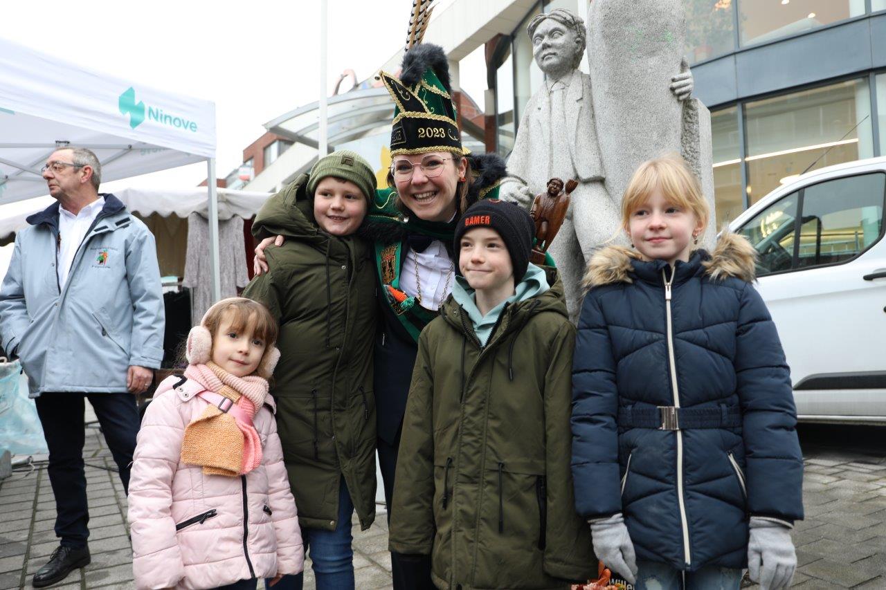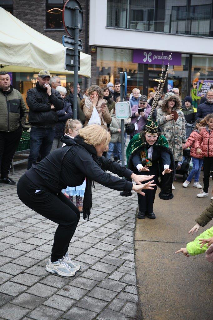 NINOVE – De marktgangers waren dinsdag 21 februari getuige van een ‘specialleken’: burgemeester Tania De Jonge, die dansles gaf aan de leerlingen van prins Stephanie.