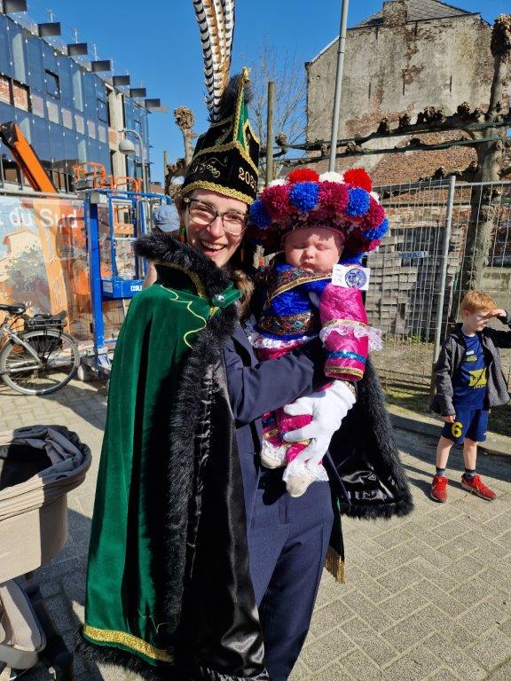 Kinderpins Wolf en -prinses Dieuwke zullen morgen 9 maart deelnemen aan de carnavalsstoet vanop de prinsenwagen. Maandagavond 10 maart gaan ze samen met de Ridders naar de kermis en naar de wortelworp op het balkon van het Oud Stadhuis.