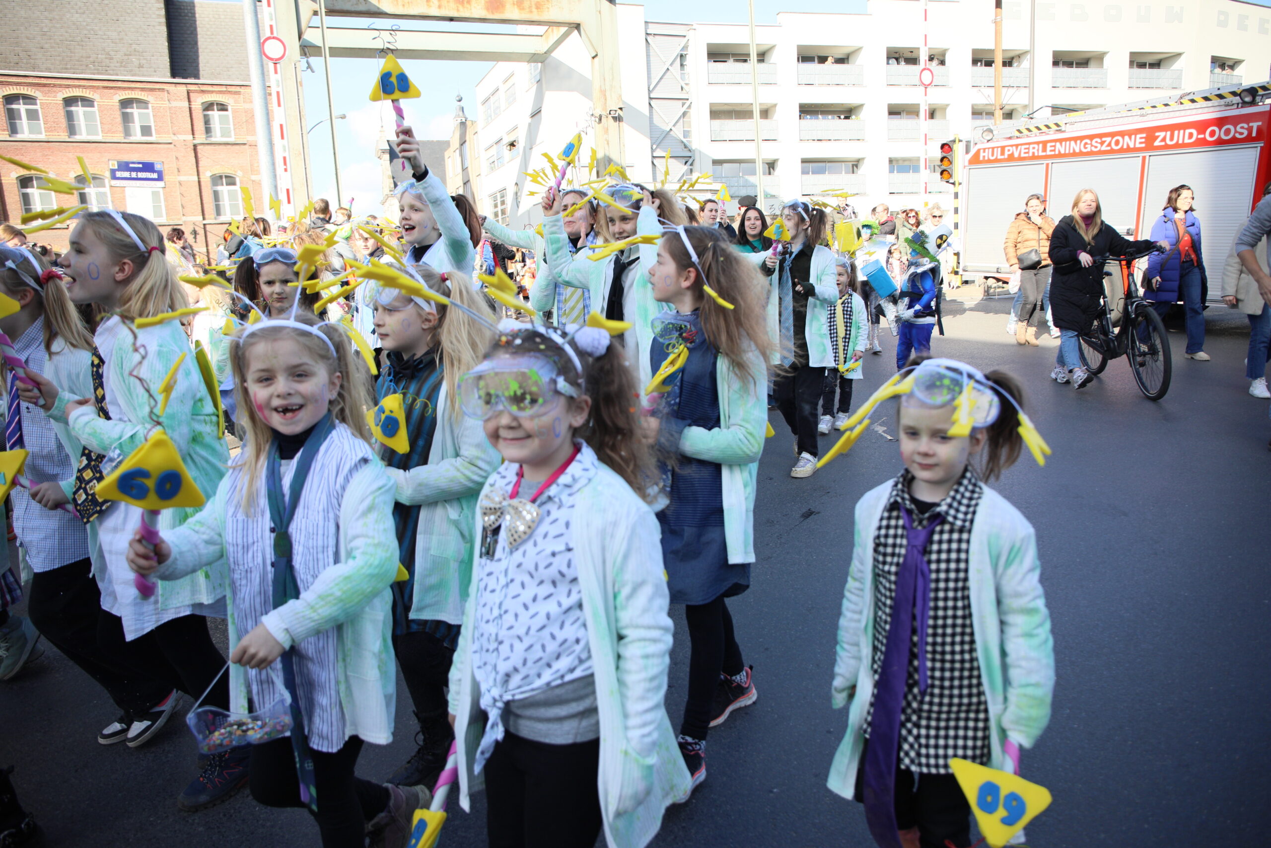 In stoet vertrokken vandaar naar de sporthal voor een grootse zaalshow met Flipken en Marie, de Belgische kampioen goochelen Jonas De Bruyn en de Loco Kids Disco.