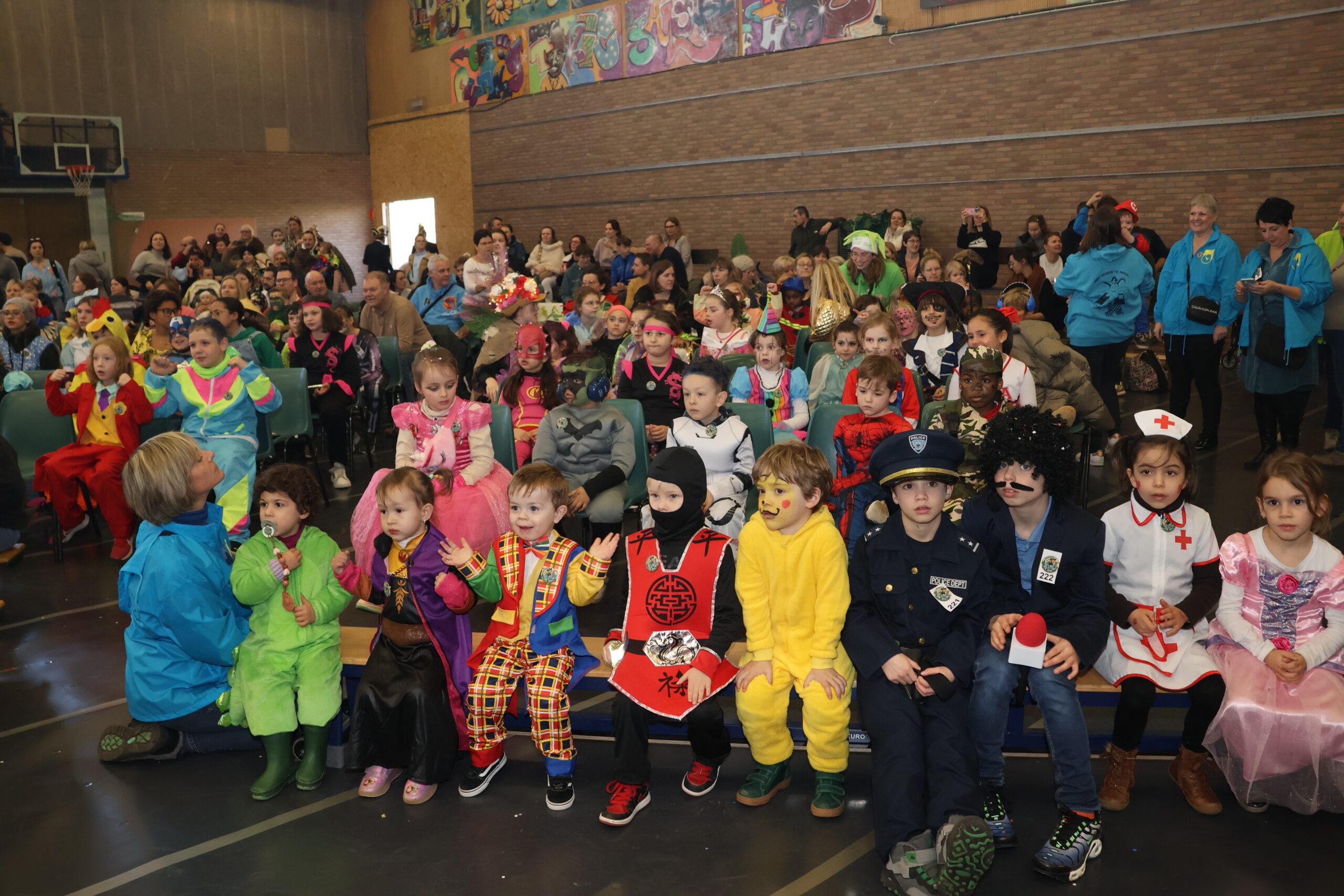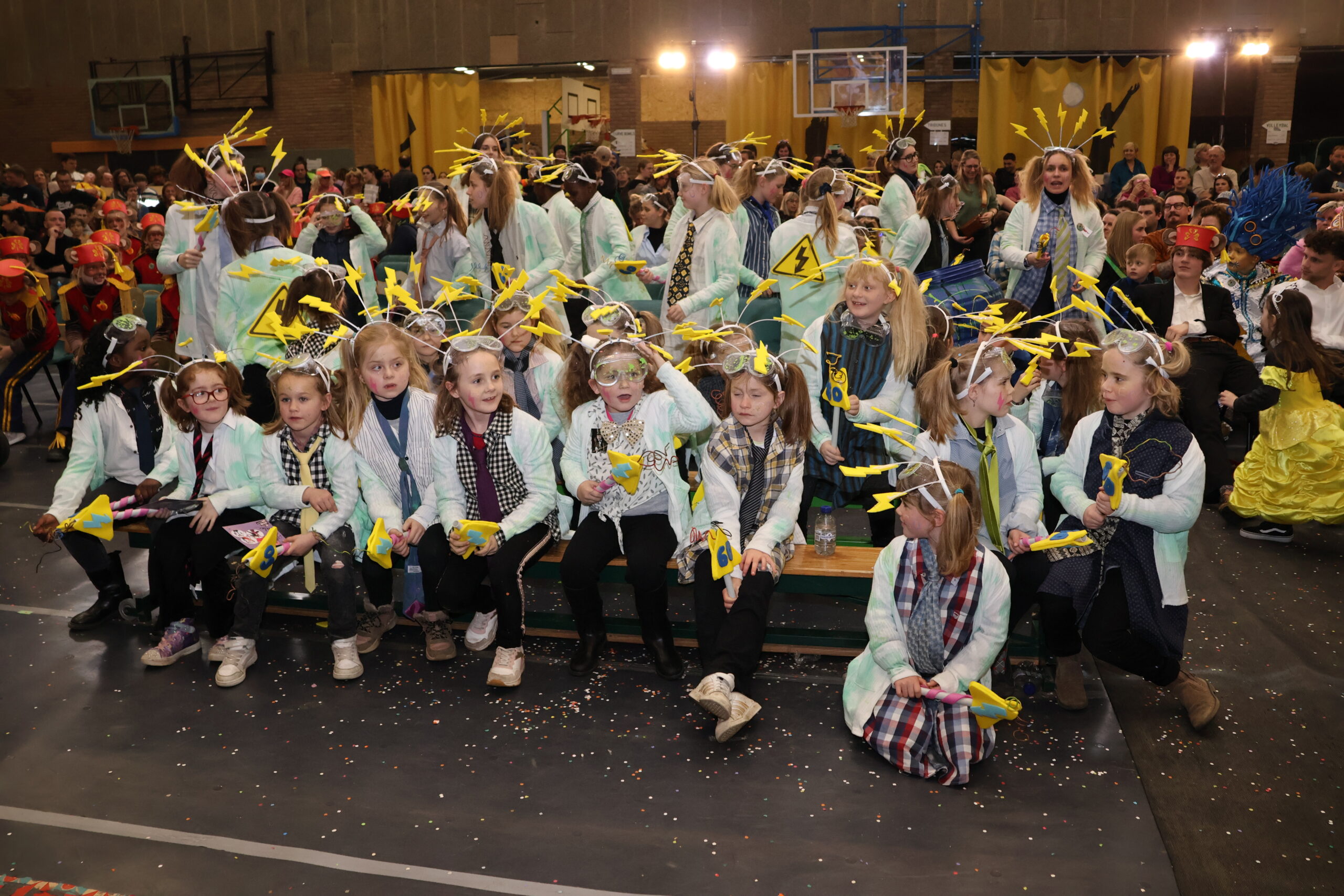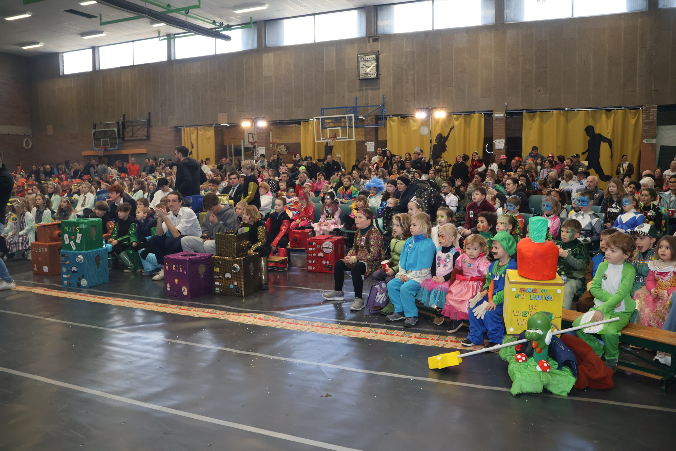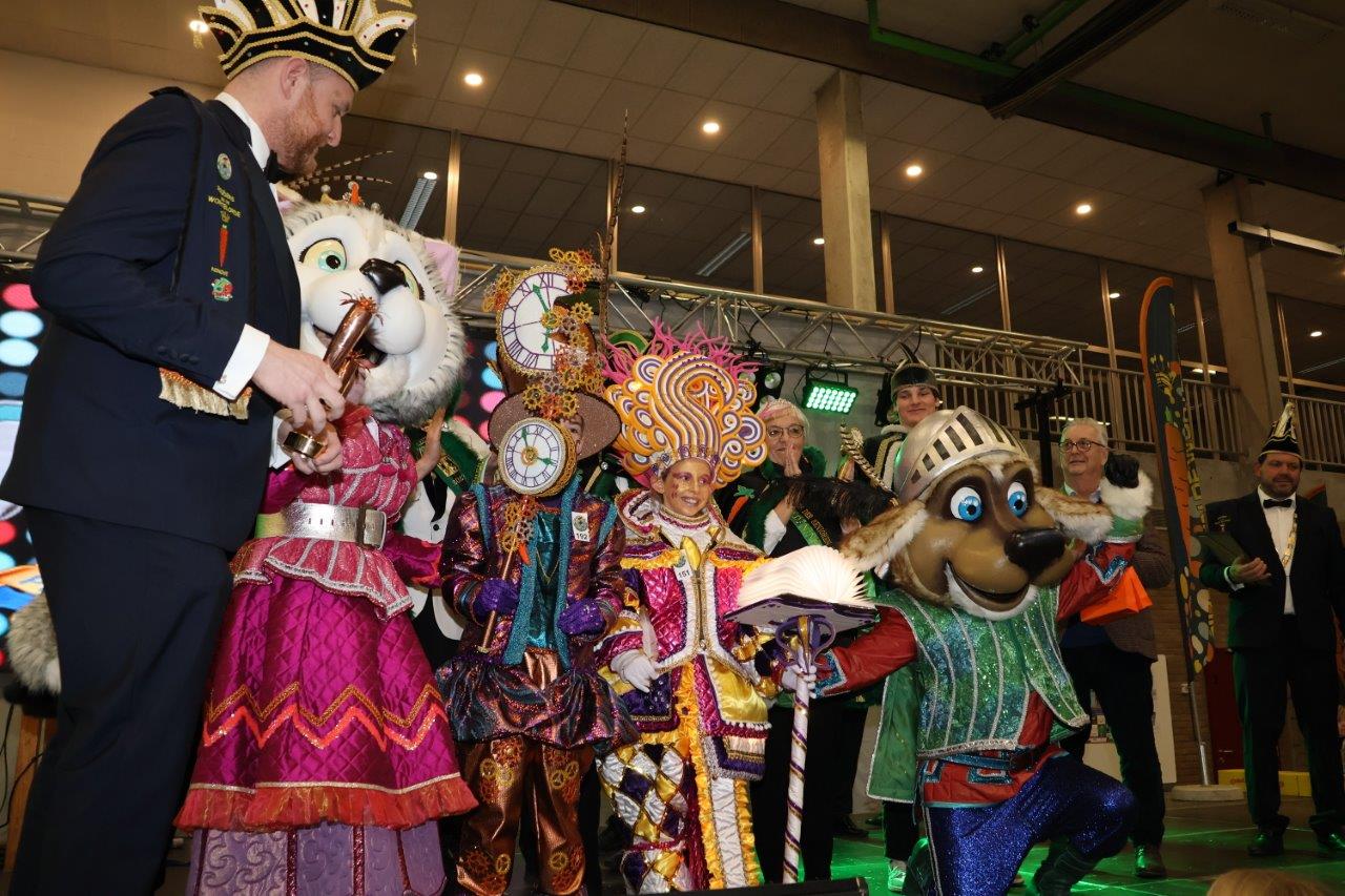 De zaal zat afgeladen vol met zowat 520 kinderen en hun familie, die natuurlijk ook benieuwd waren naar de winnaars in de verschillende categorieën. Een onafhankelijke jury lette bij de toekenning van de prijzen vooral op de originaliteit, de spitsvondigheid en het carnavaleske van de uitbeelding.