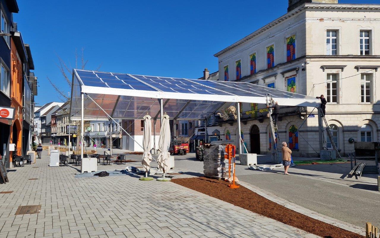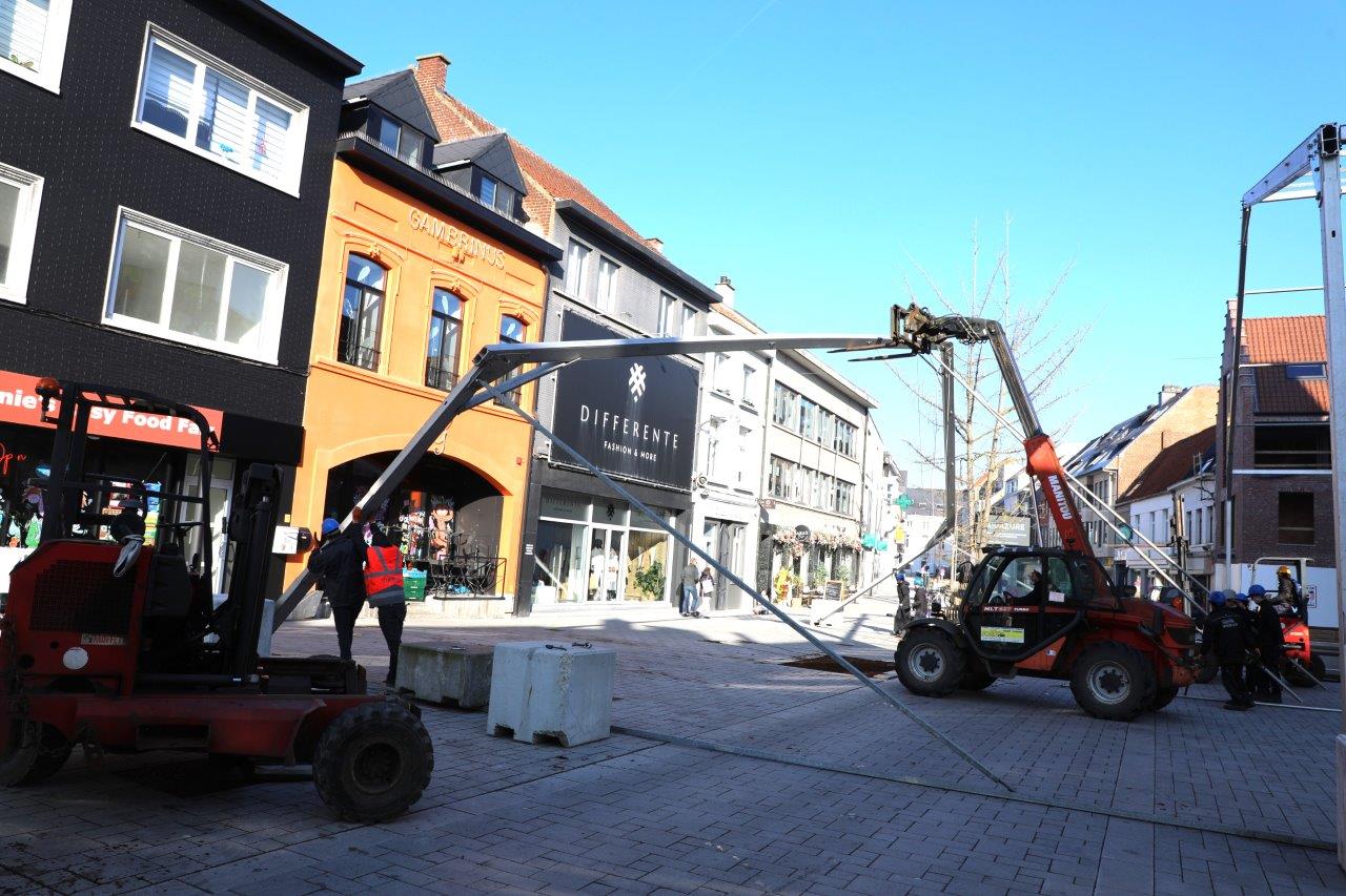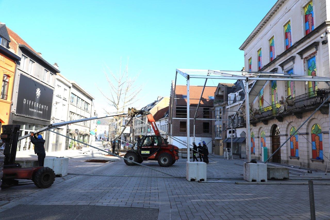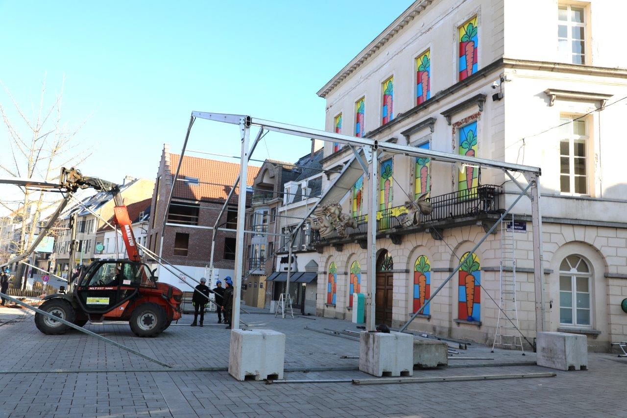 NINOVE – Een gespecialiseerde firma heeft maandag 3 maart de grote tentconstructie opgetrokken, waaronder komend weekend een deel van de carnavalsevenementen zal plaatsvinden.