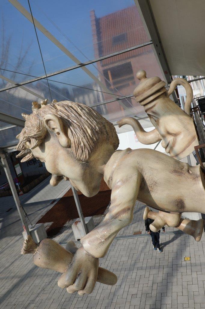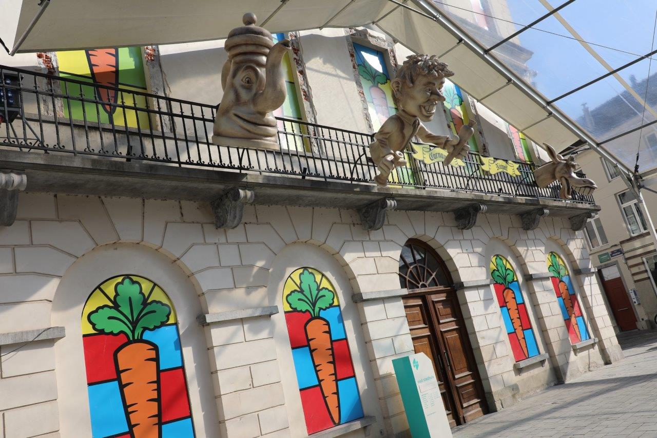 Deze constructie is speciaal voor carnaval Ninove ontworpen, zodat de carnavalswagens en het gewone verkeer er kunnen onderdoor rijden.
