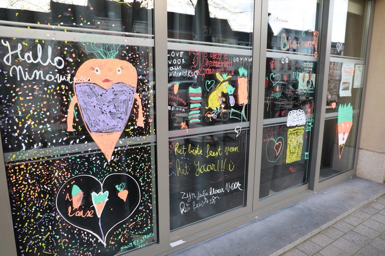 Zondag 28 januari konden de jonge raamkunstenaars hun kunnen tonen op de ramen in het Ninia Shopping.