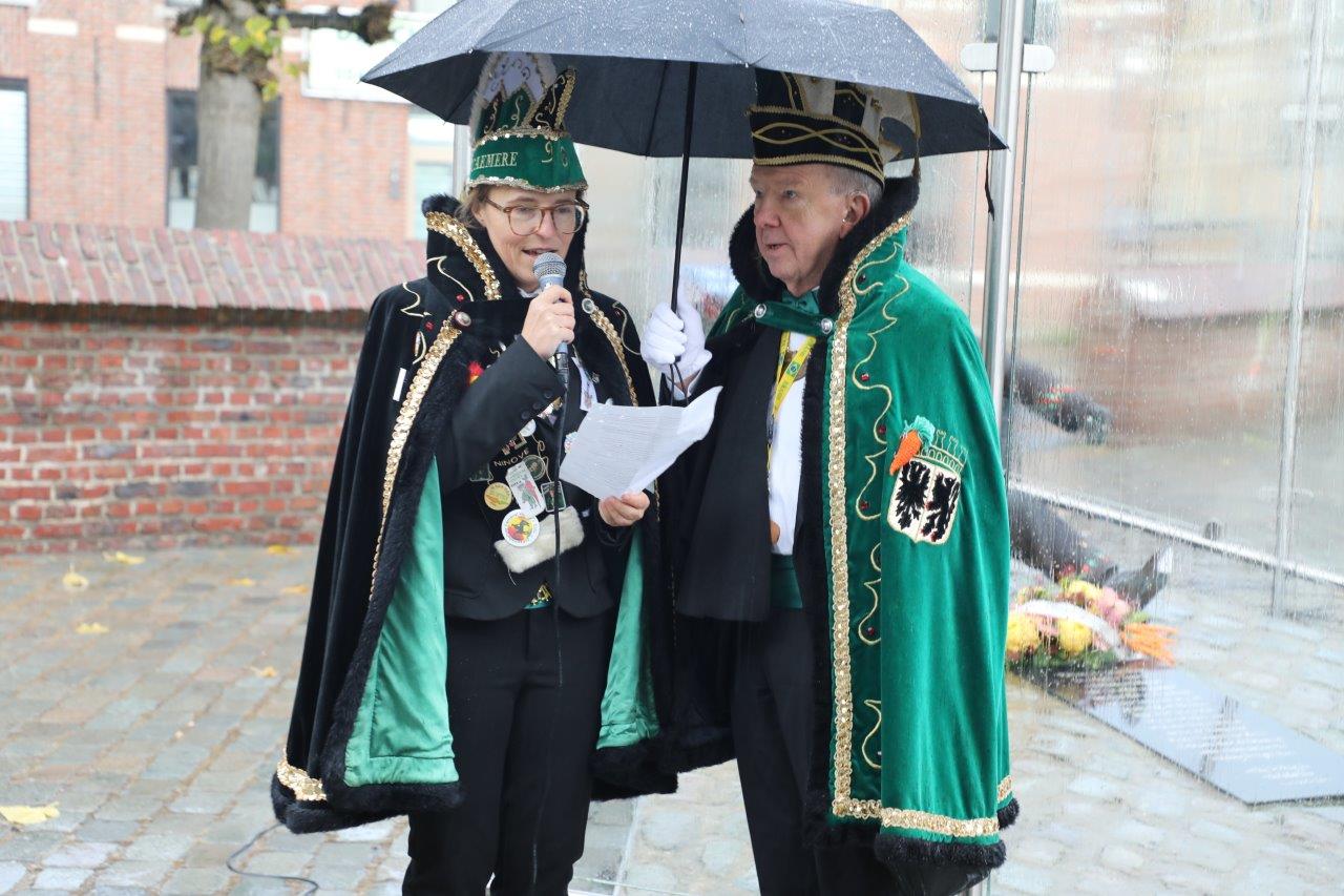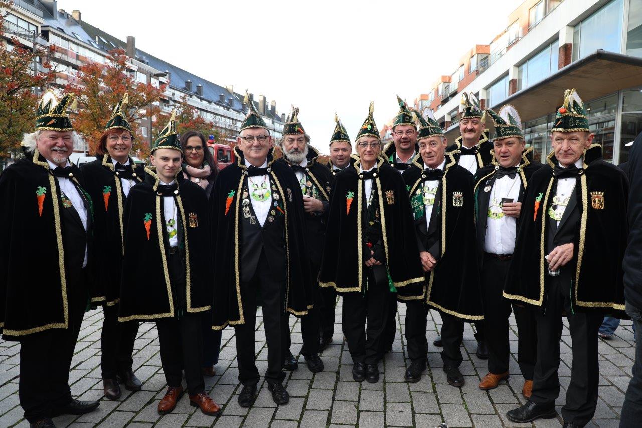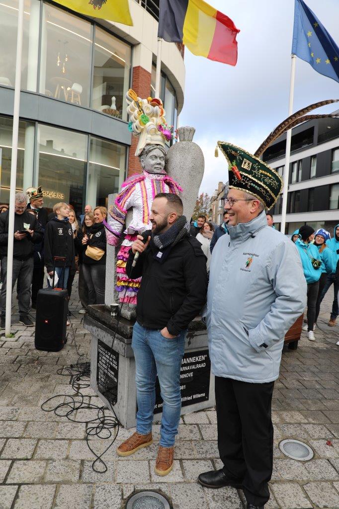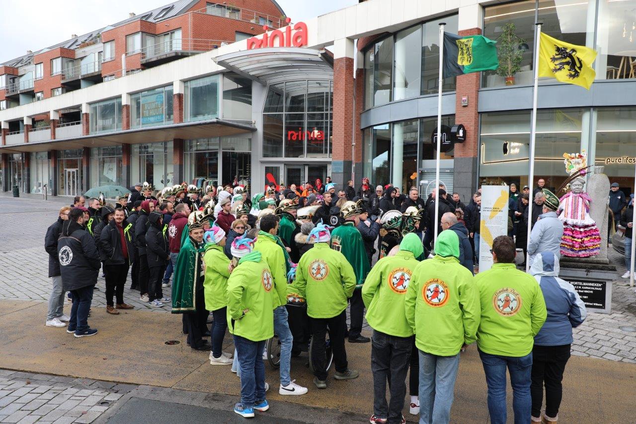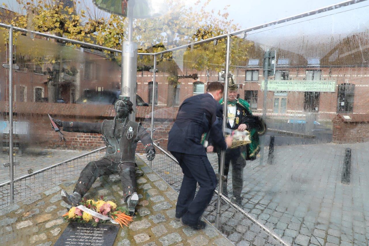 Zaterdag 11 november begon met een bezoekje aan het Wortelmanneken, die van carnavalsvereniging Dobbelteup een kostuum kreeg aangemeten. Daarna ging de delegatie naar Dingsken, voor een herdenking van de overleden carnavalisten.