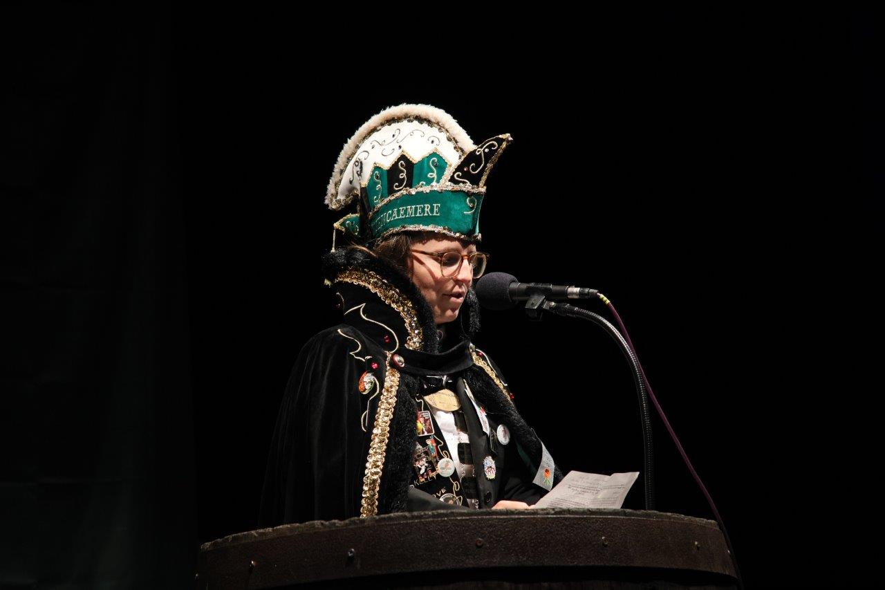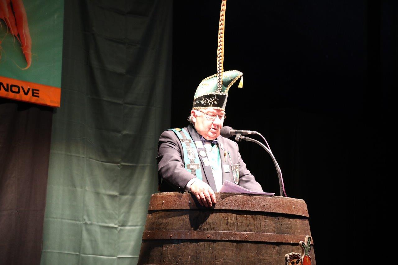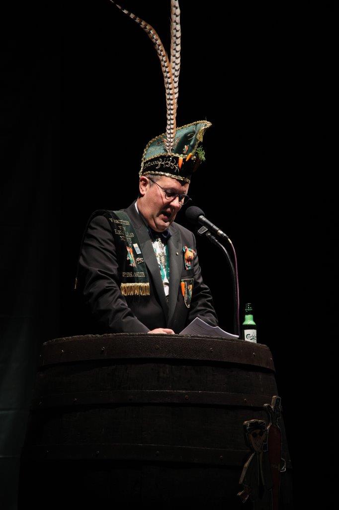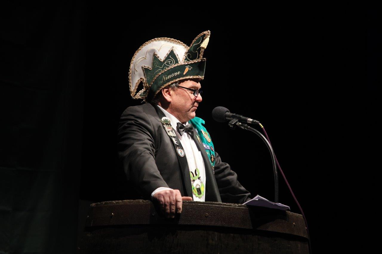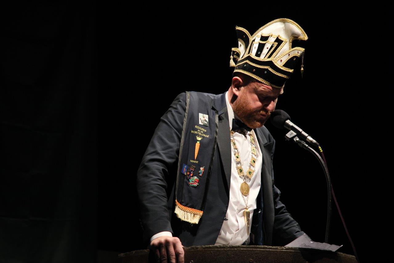 De voorzitter van de Koninklijke Karnavalraad, Pascal Carael, besteeg daarna het podium. Hij maakte onder meer het thema bekend, waaronder de prinsaanstelling op 03 februari 2024 zal gebeuren in eventhal Cloë.