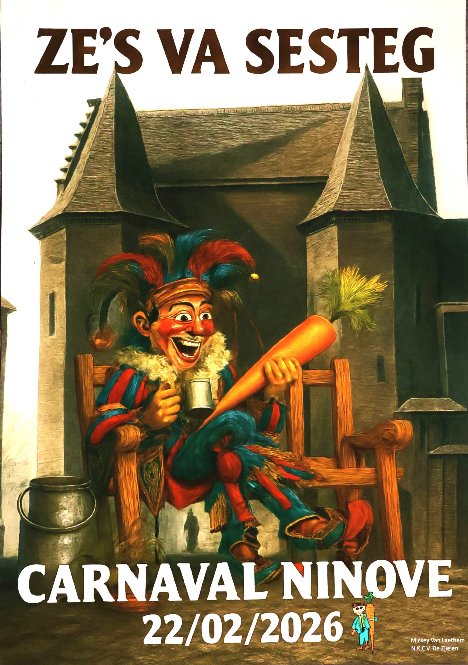 NINOVE – De winnende affiche voor carnaval 2026 is van de hand van Mickey Van Laethem van carnavalsvereniging De Zjiëlen.