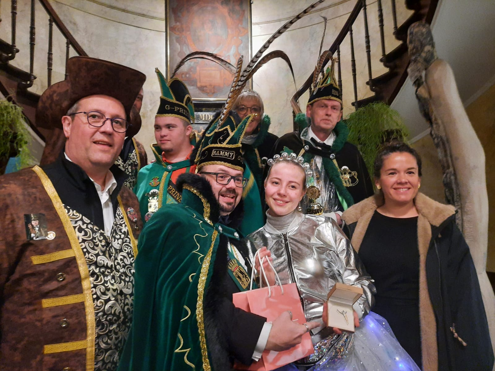 Vanop het balkon gooiden de prinsen en hun gevolg wortels naar de graaiende menigte. Eentje gaf recht op de gouden wortel, geschonken door juweliers Paul.