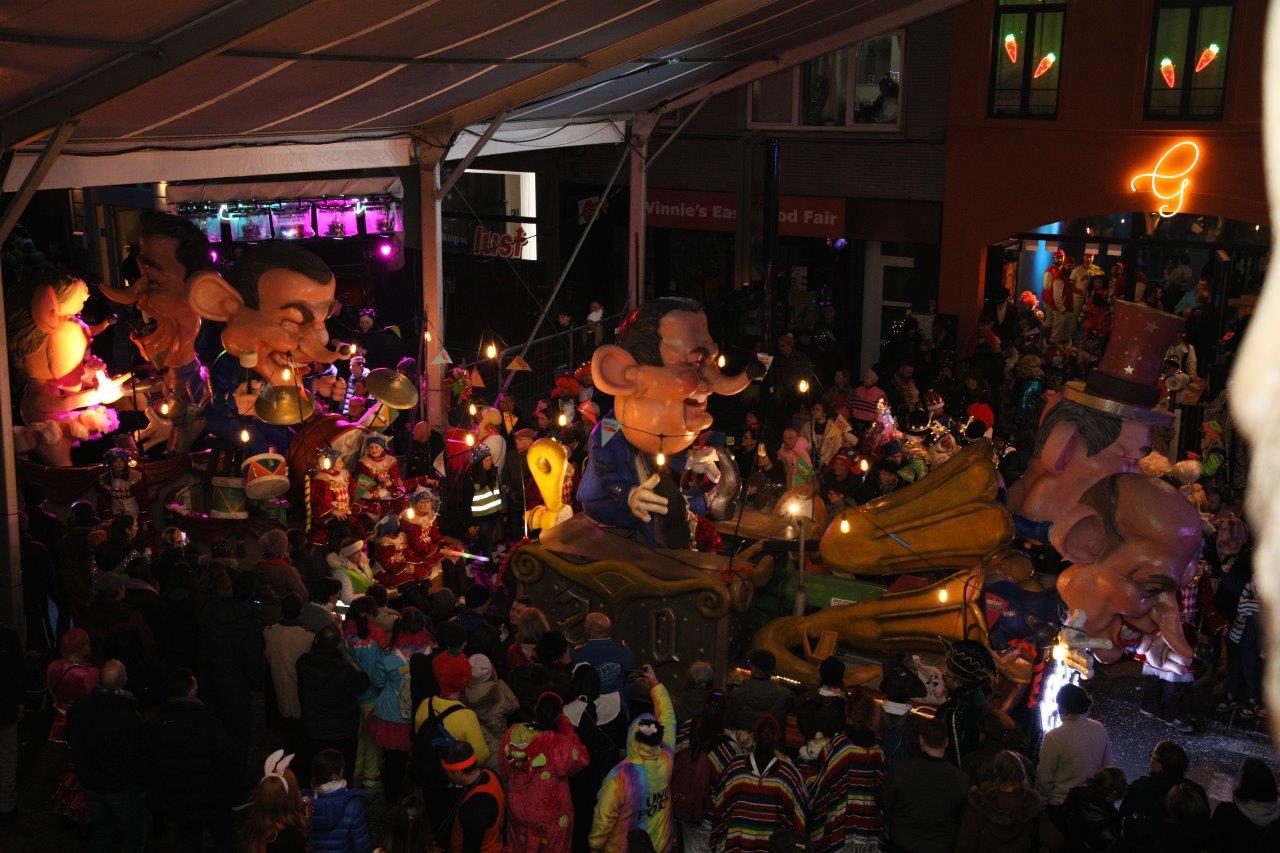 NINOVE – Maandagavond van carnaval is traditioneel tijd voor de maandagavondstoet en de Gouden Wortelworp aan het Oudstrijdersplein.