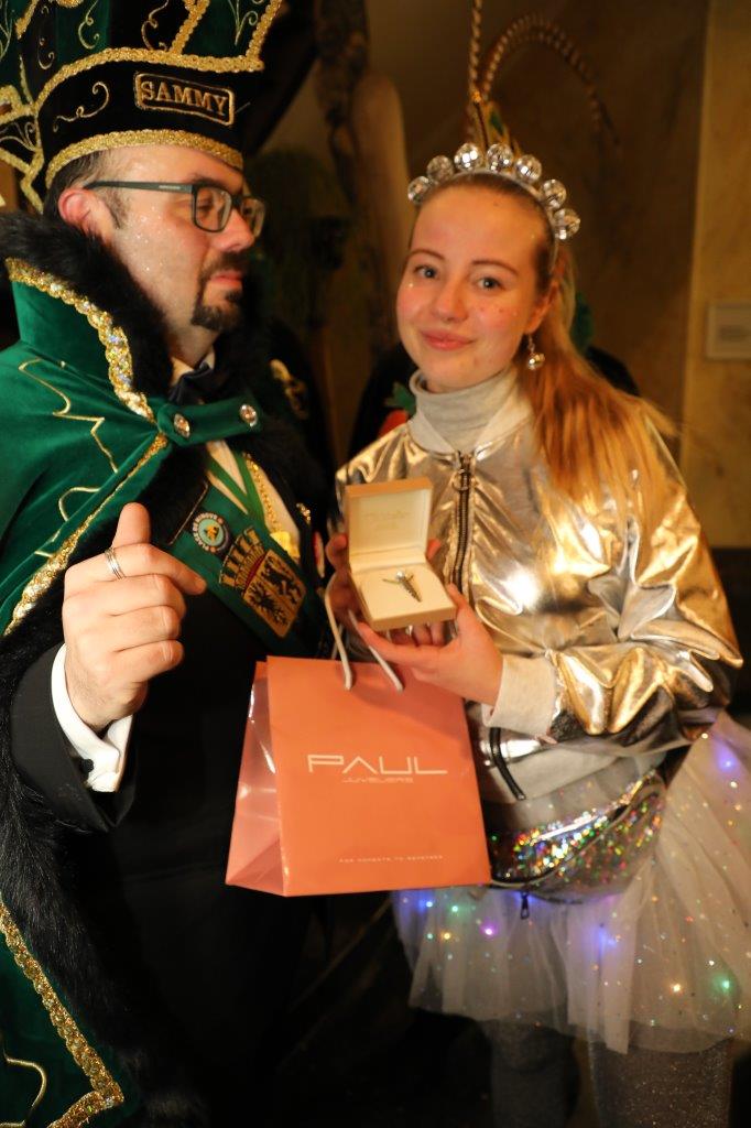 De winnares van het juweel, geschonken door juweliers Paul, was Lara De Pauw (23) uit Herne. Prins Sammy mocht het vernieuwde worteljuweel overhandigen aan een dolgelukkige Lara.