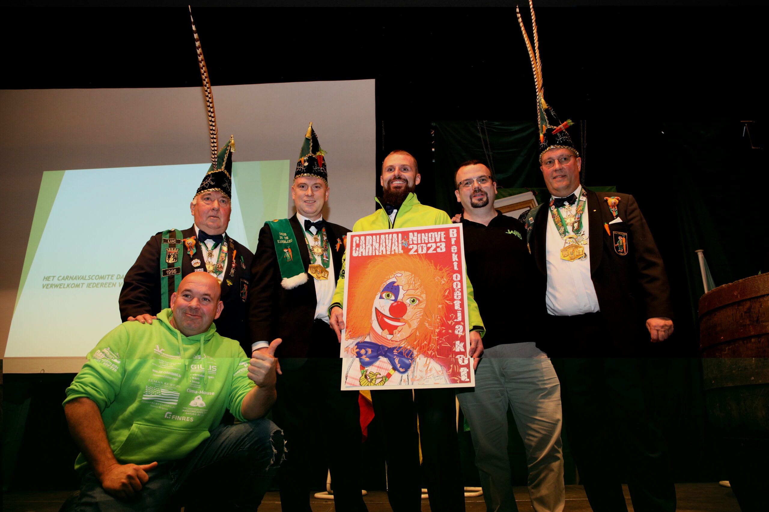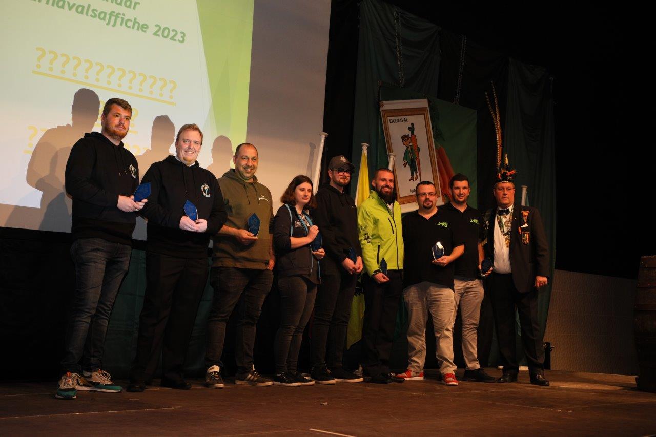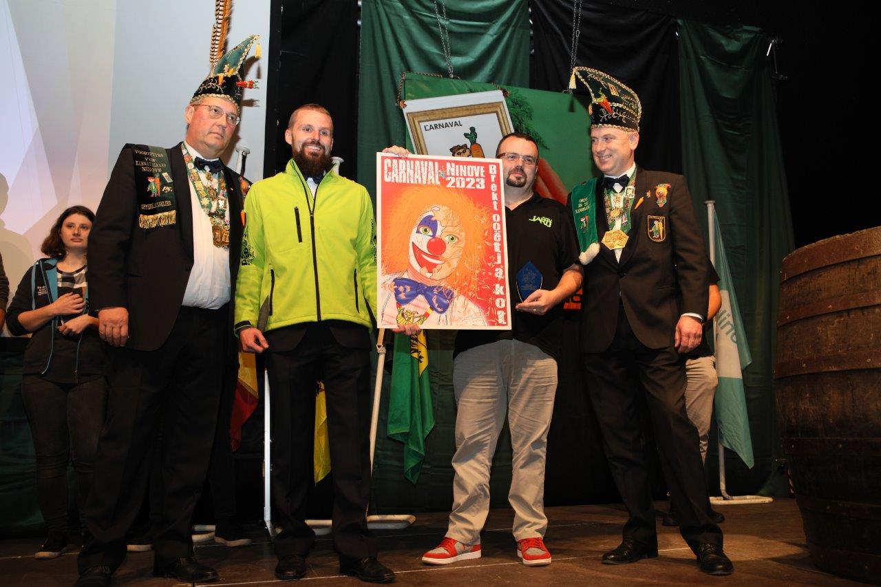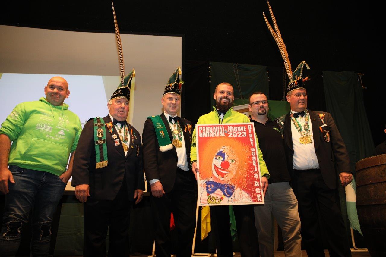 Pascal Carael en Giovanni Neckebroeck van de Koninklijke Karnavalraad Ninove mochten tot slot de winnaars bekendmaken van de affiche voor de carnavalseditie 2023. Hiervoor waren 6 ontwerpen van 8 carnavalisten ingediend.