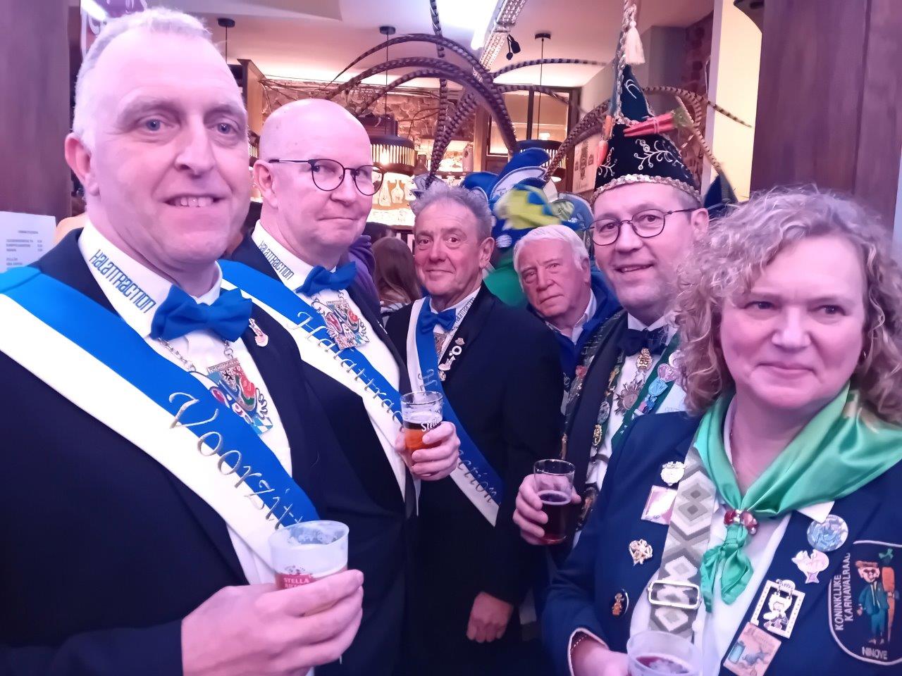 NINOVE/HALLE – Na een geslaagd en druk bezocht carnavalsweekend waren maandagavond 05 februari opnieuw heel wat carnavalisten aanwezig voor de verbroedering tussen de Ninoofse en de Halse carnavalisten.