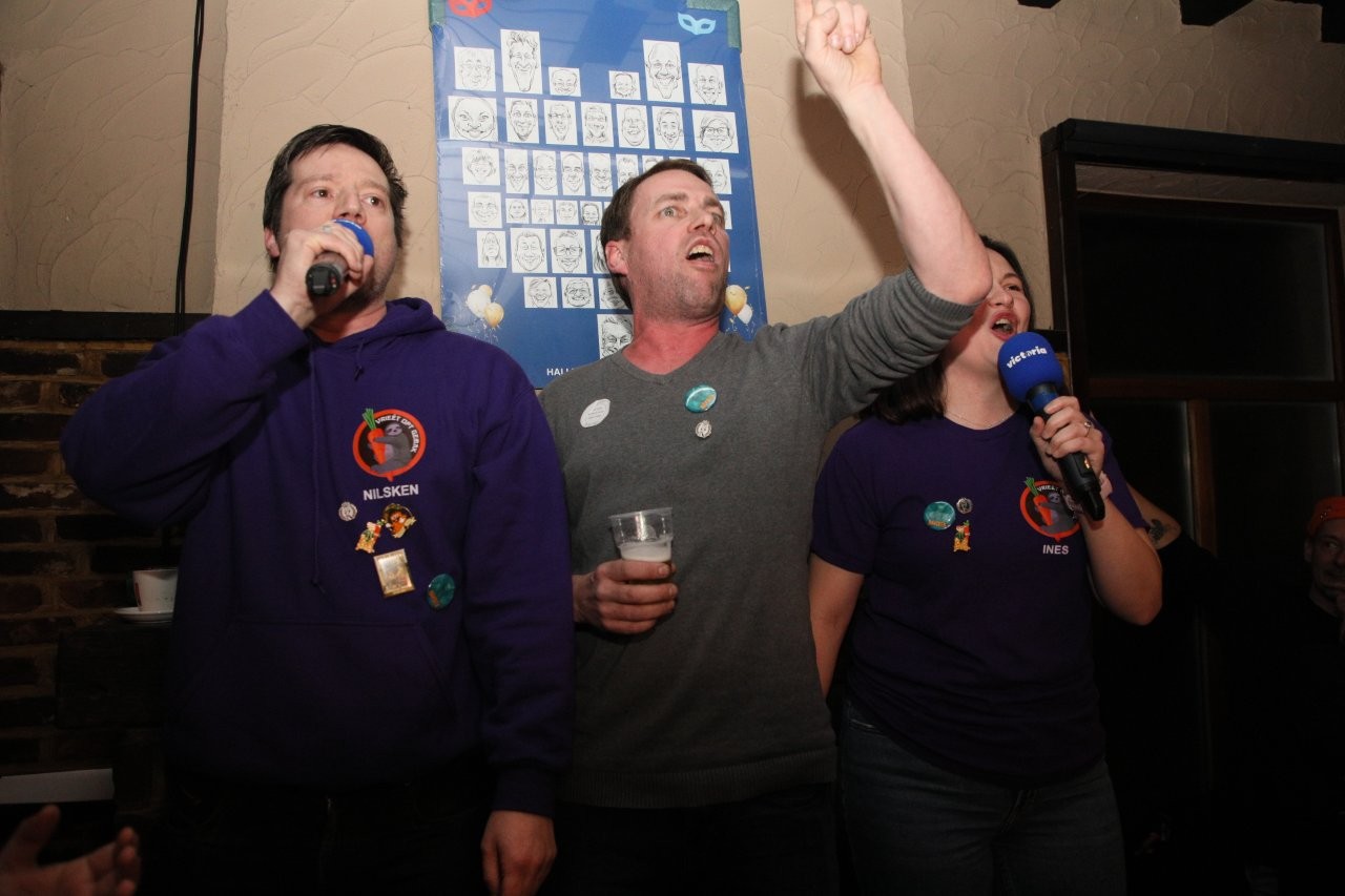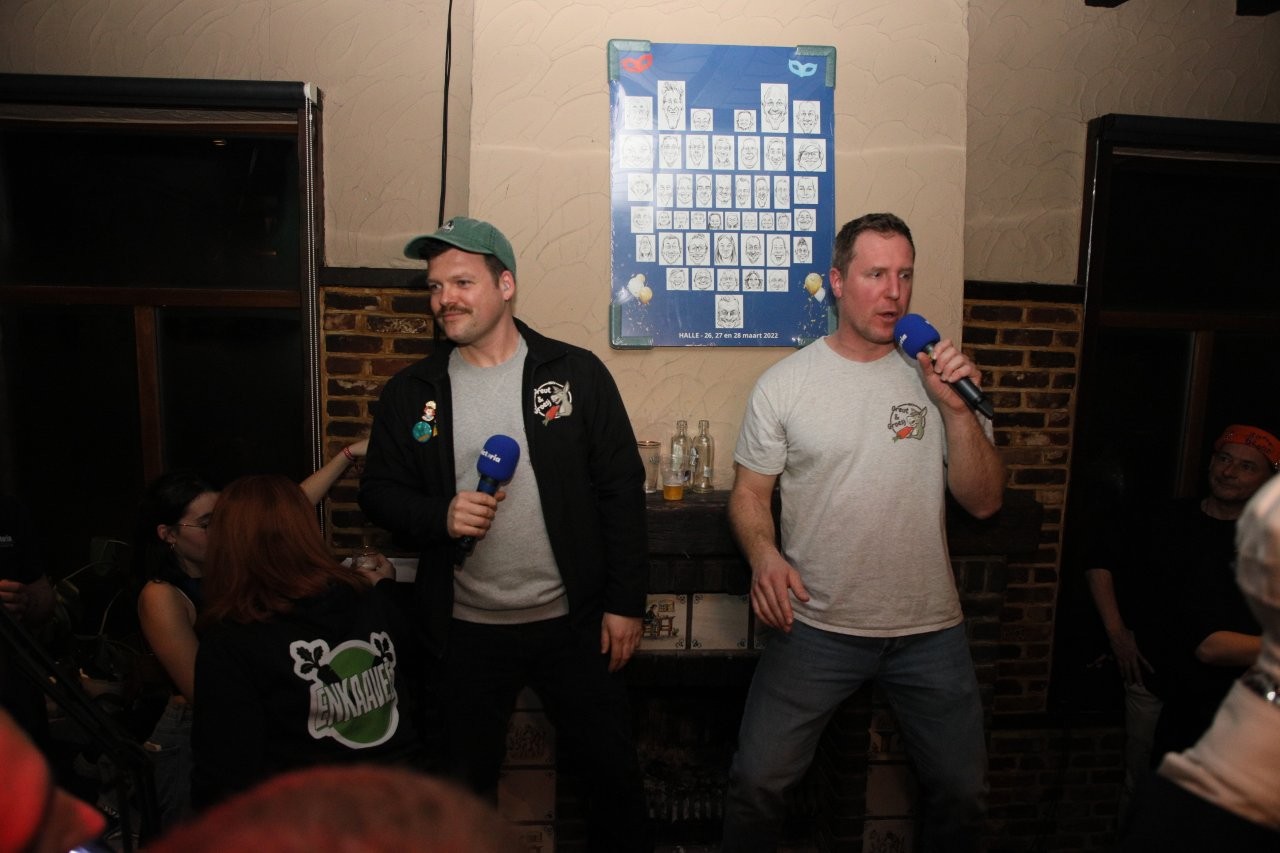 Het Halse café Lamme Gisj was voor deze gelegenheid tot de nok volgelopen. Naast vele carnavalisten waren ook de Koninklijke Karnavalraad en de Prinsencaemere talrijk aanwezig. Uit Halle waren Hallatraction en heel wat carnavalisten afgezakt naar de verbroedering.