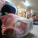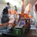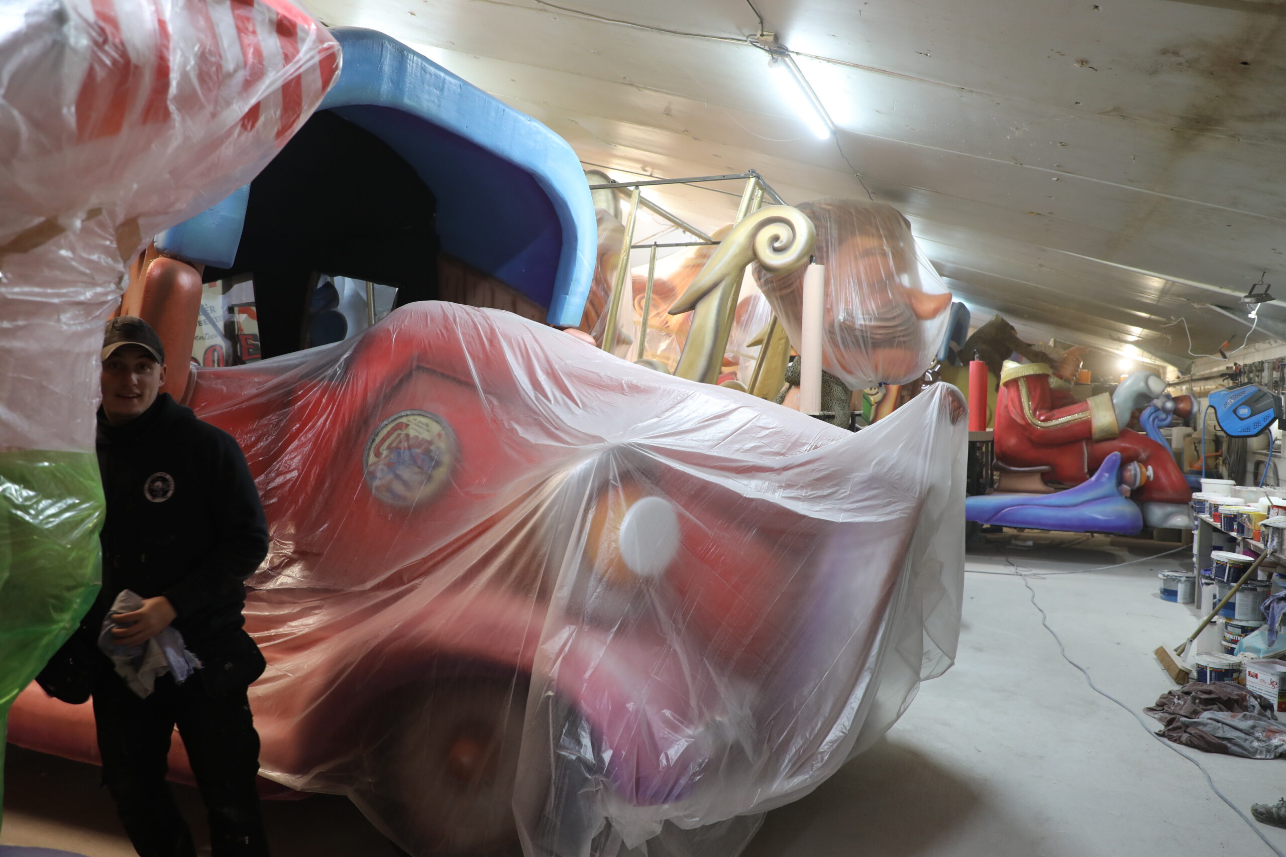 Francky Driesmans, alias Patat, beaamt dit. “De idee voor deze praalwagens is de week na de vorige carnaval ontstaan. We zijn met de voorbereiding begonnen op 18 maart en na een drietal weken was alles in kannen en kruiken. In juni ben ik begonnen met de isomo te snijden: 5 dagen op 7 tot nu. Na zoveel blokken mag het wel gedaan zijn. Je weet wel dat je er als groep moet aan werken, want er kruipt echt veel werk in. De verschillende stukken samen zullen een totale lengte van 125 m hebben, al verwacht ik geen problemen om daarmee te manoeuvreren. We zijn gereed, op enkele details na. De kostuums liggen al een tijdje klaar.”