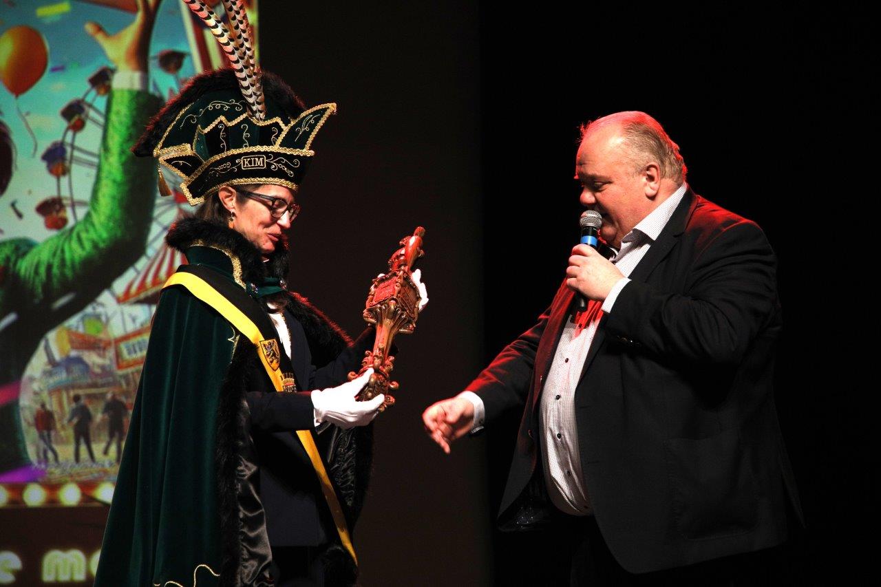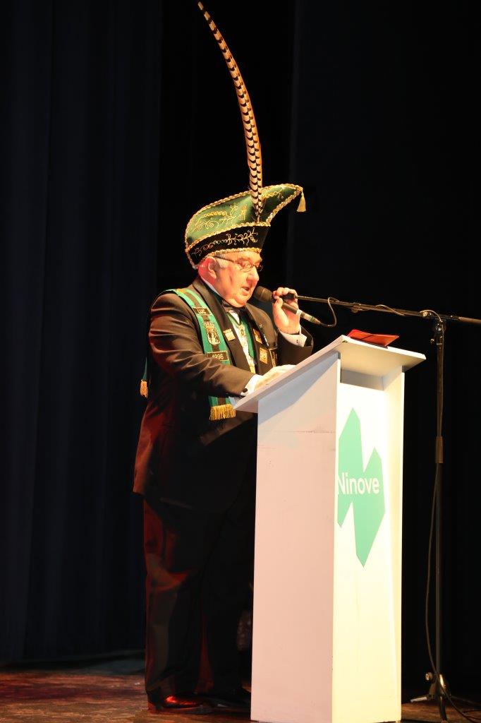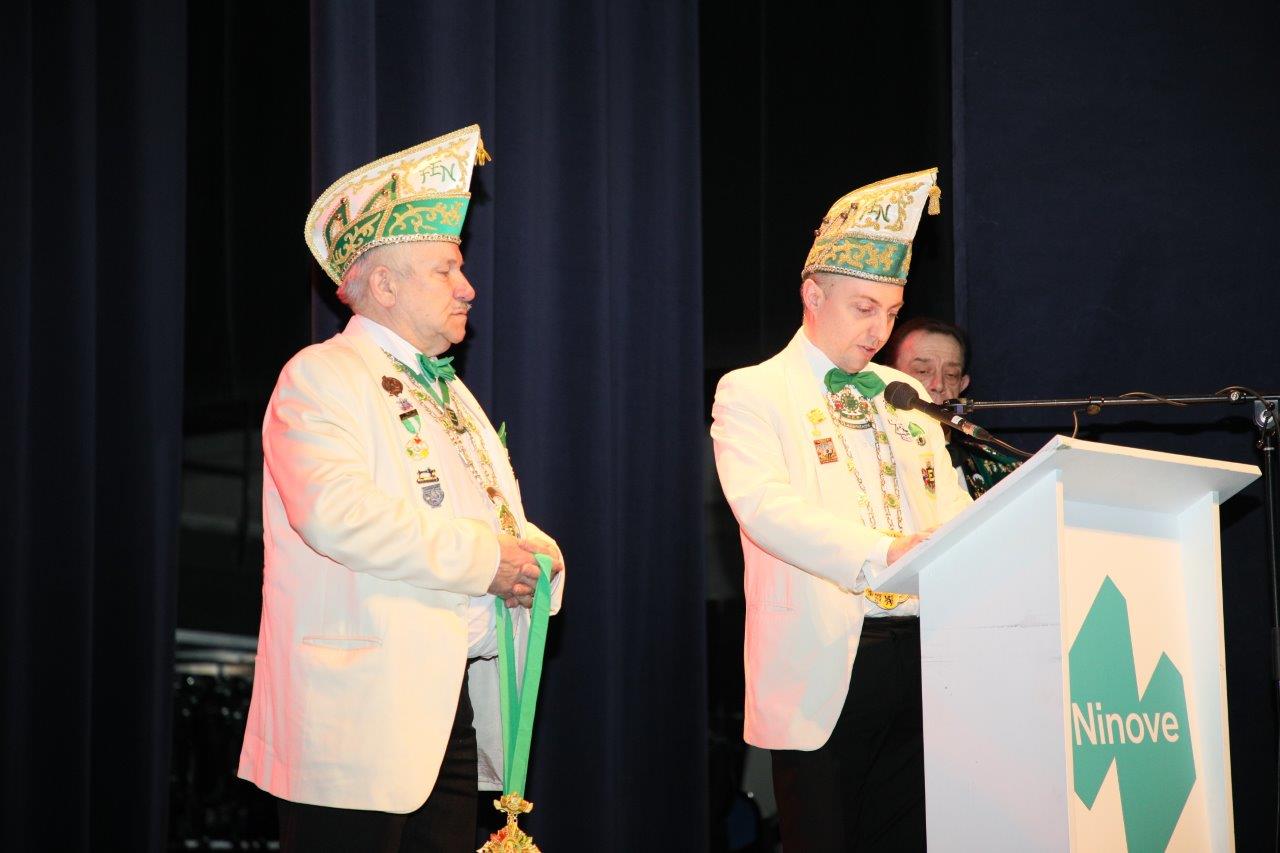 NINOVE – Burgemeester Guy D’haeseleer overhandigde zaterdag 01 maart tijdens de machtsoverdracht in het cc De Plomblom symbolisch de sleutels van de stad aan prins Kim.