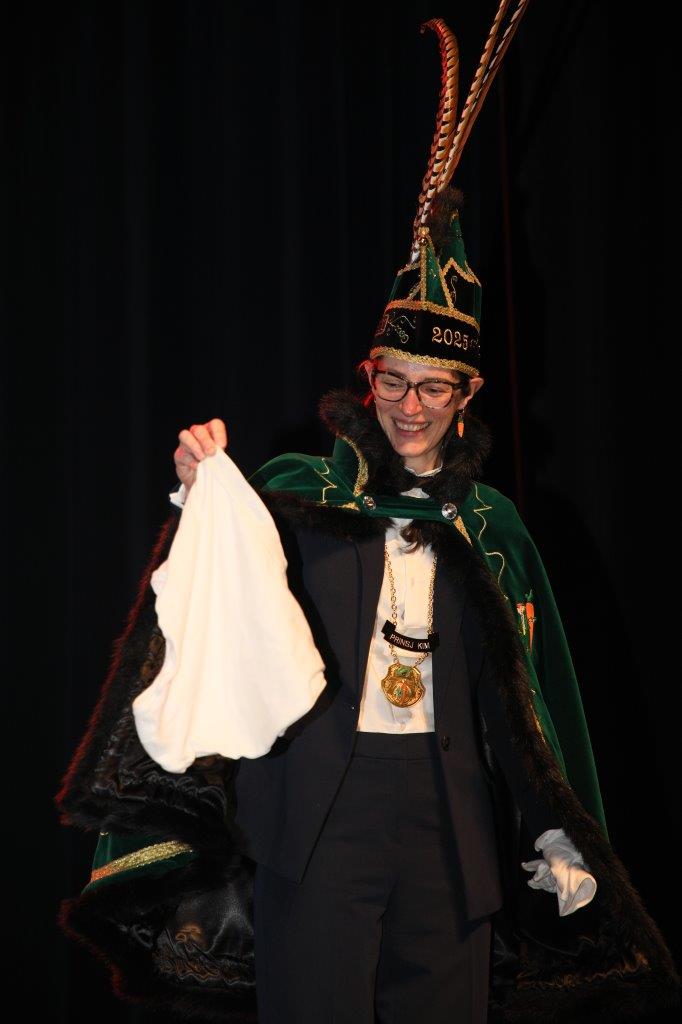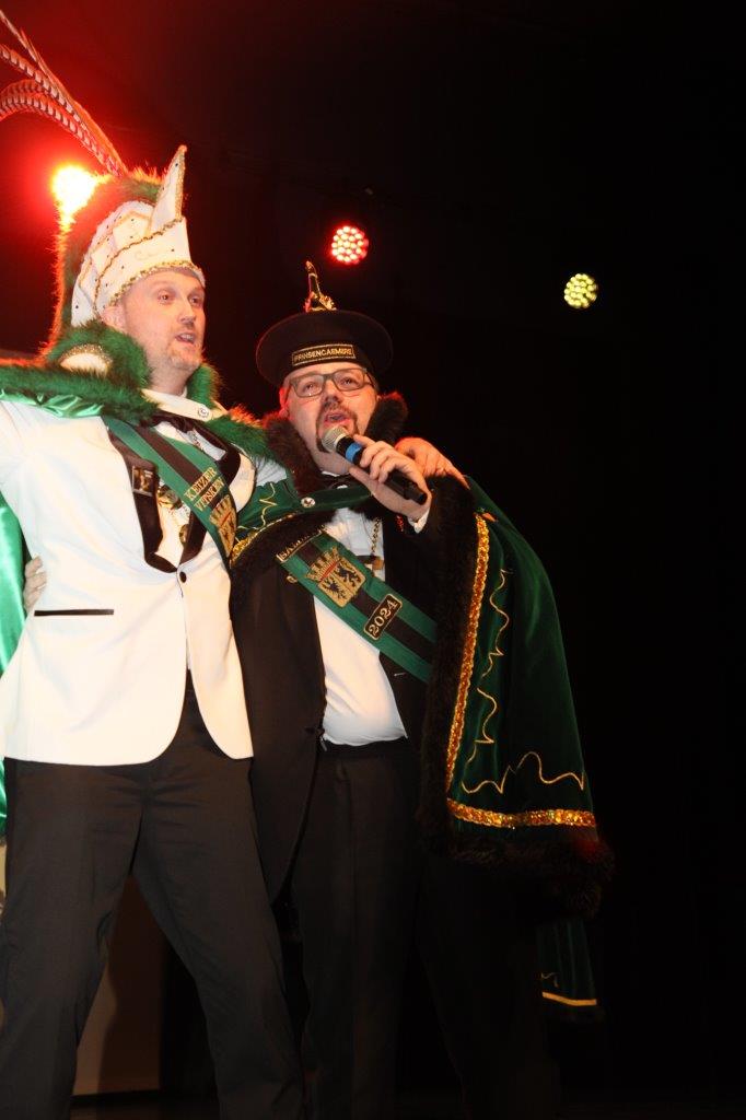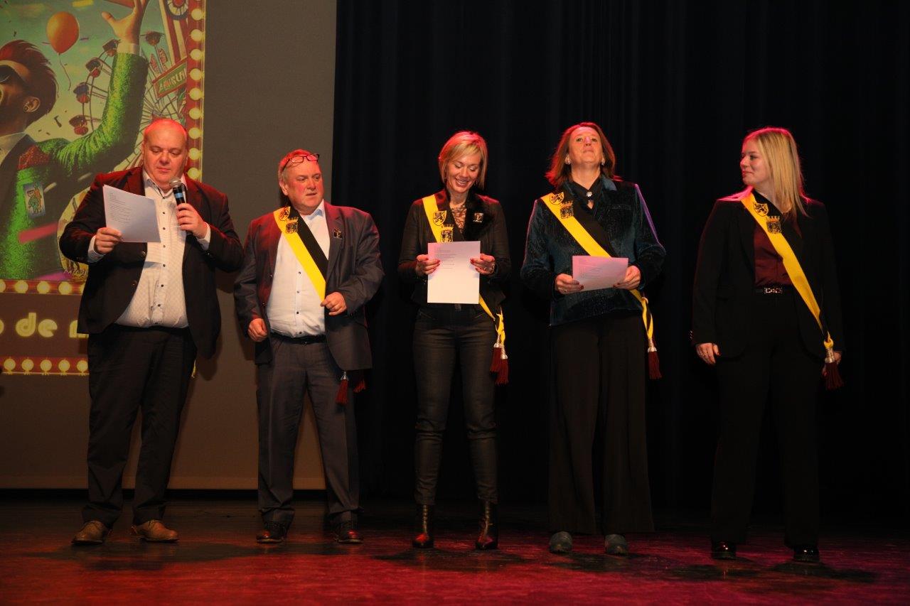 De burgemeester en de schepenen hadden een ludiek liedje opgenomen dat ze ten gehore brachten, net voor de burgemeester de macht overdroeg aan prins Kim.
