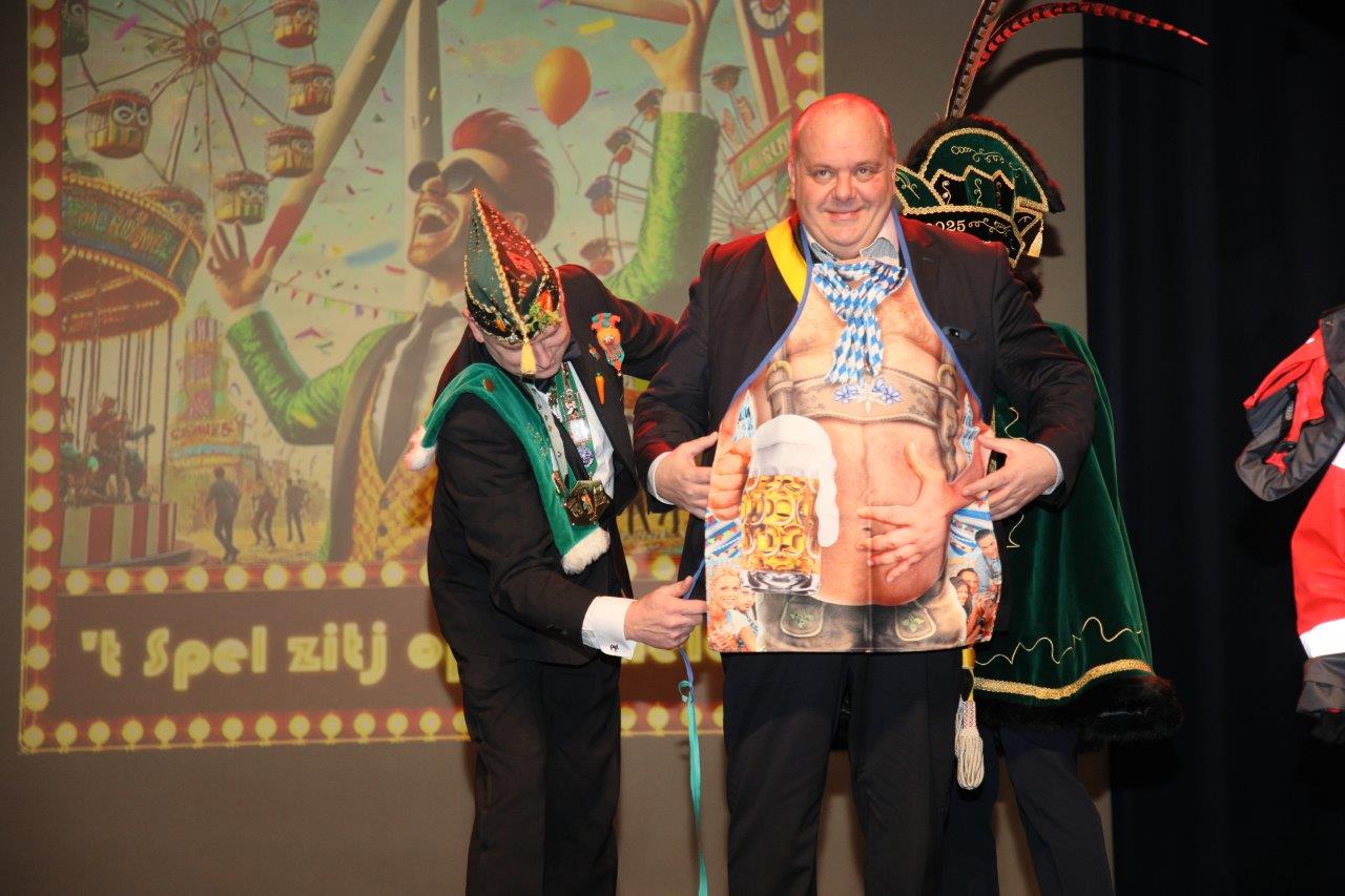 Hij kreeg alvast de nodige attributen en kledij mee om deze taak tot een goed einde te brengen. Afwachten of hem dit lukt. Afspraak dinsdag 04 maart om 11.00 uur op de hoek van de Centrumlaan en de Kaardeloodstraat. De Koninklijke Karnavalraad vergast de aanwezigen op een lekkere Witkap.