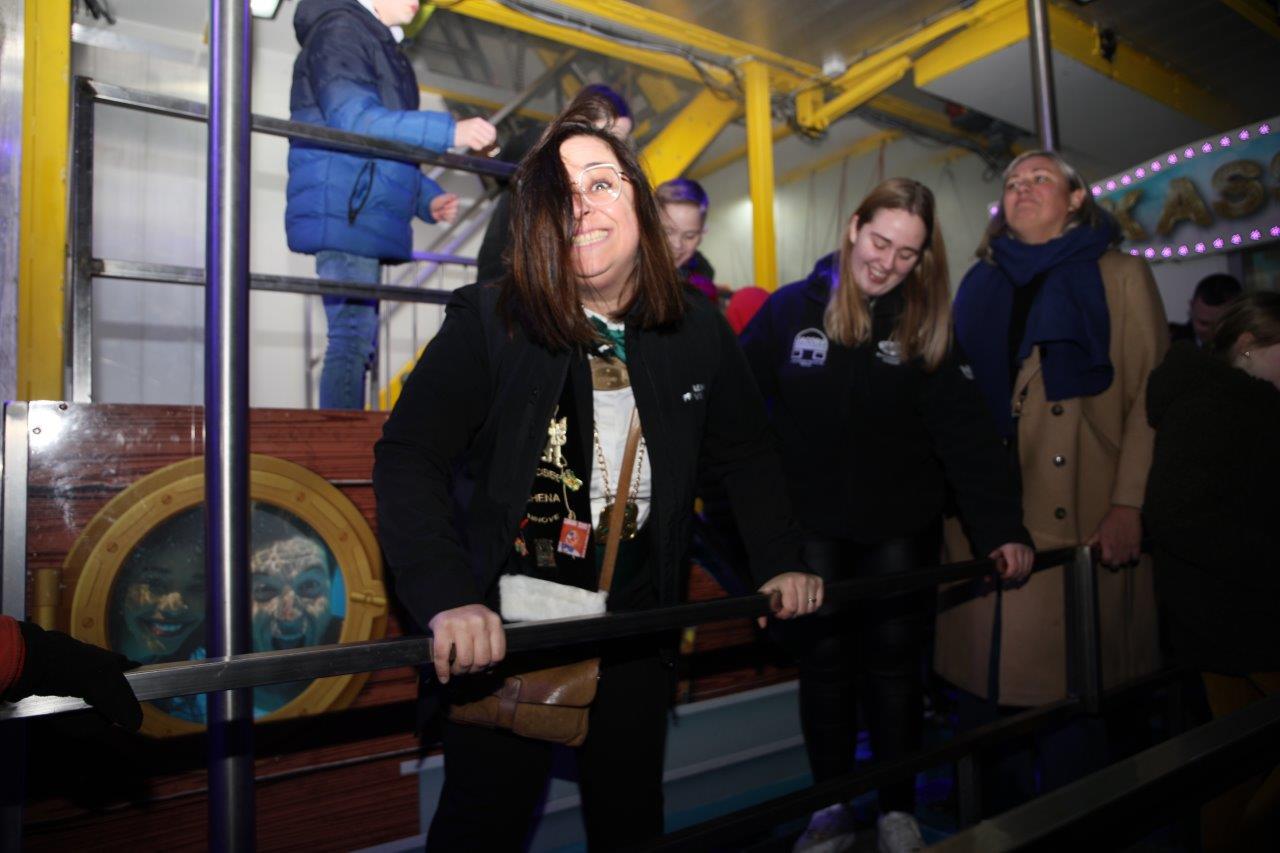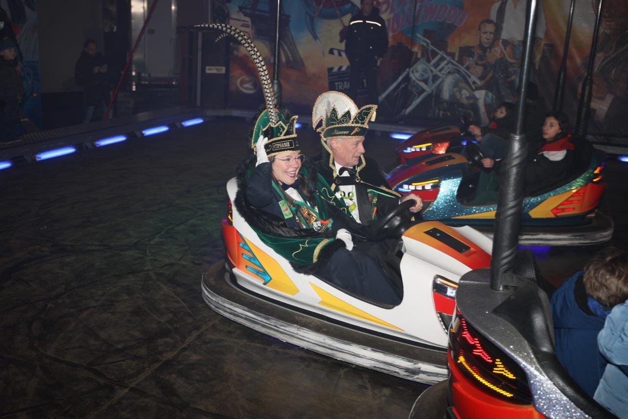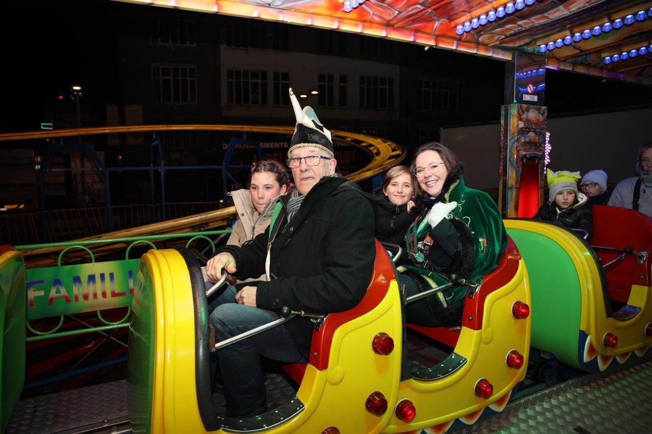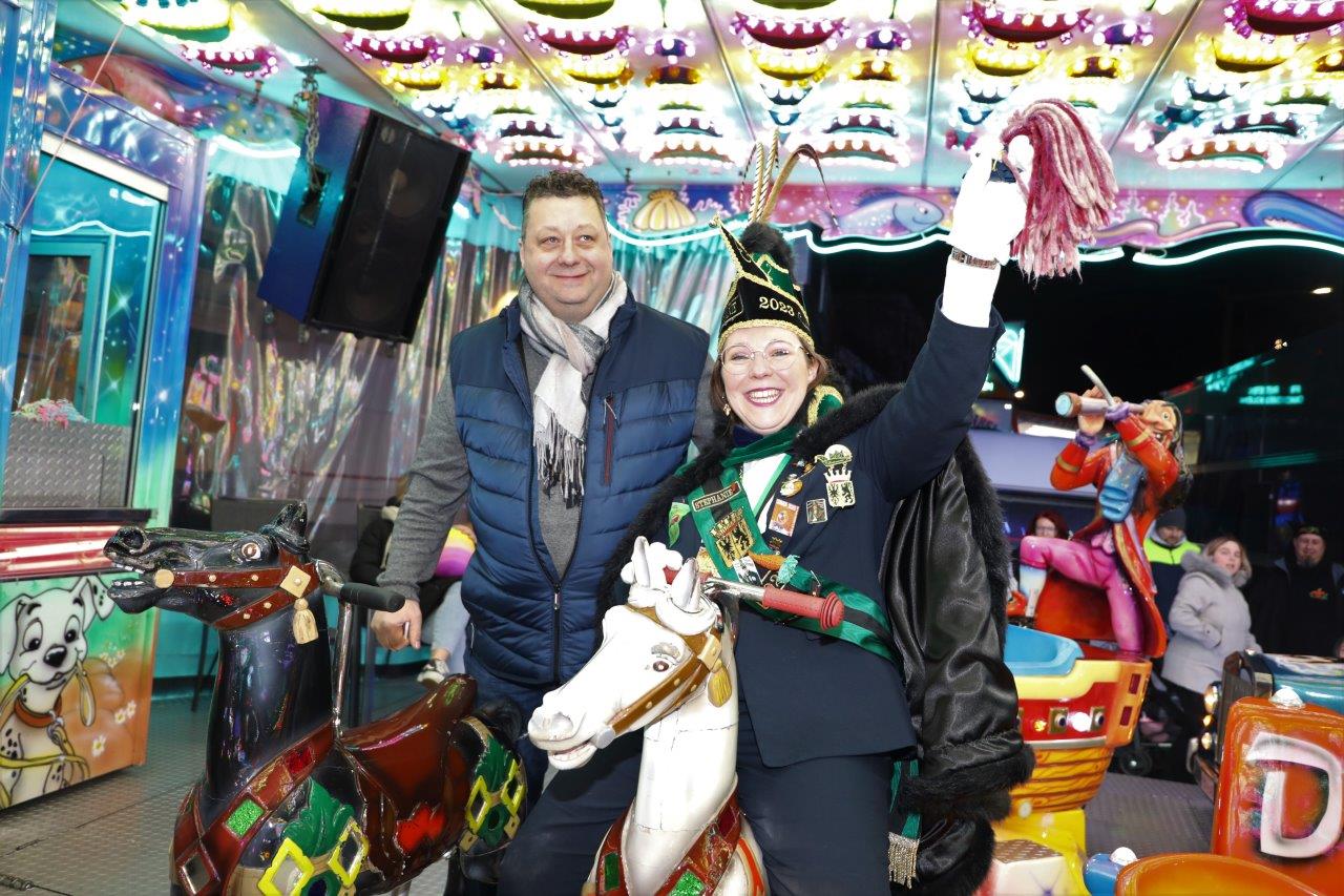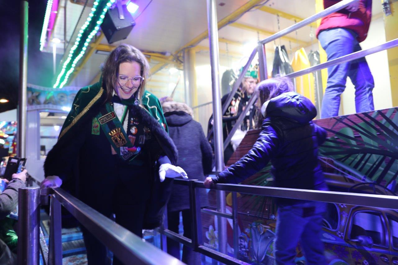 Prins Stephanie testte samen met de burgemeester, de schepenen en tal van carnavalisten de attracties uit.