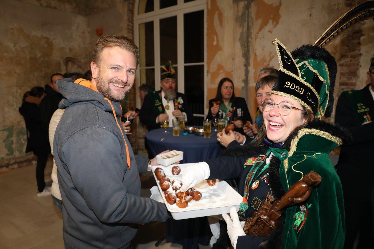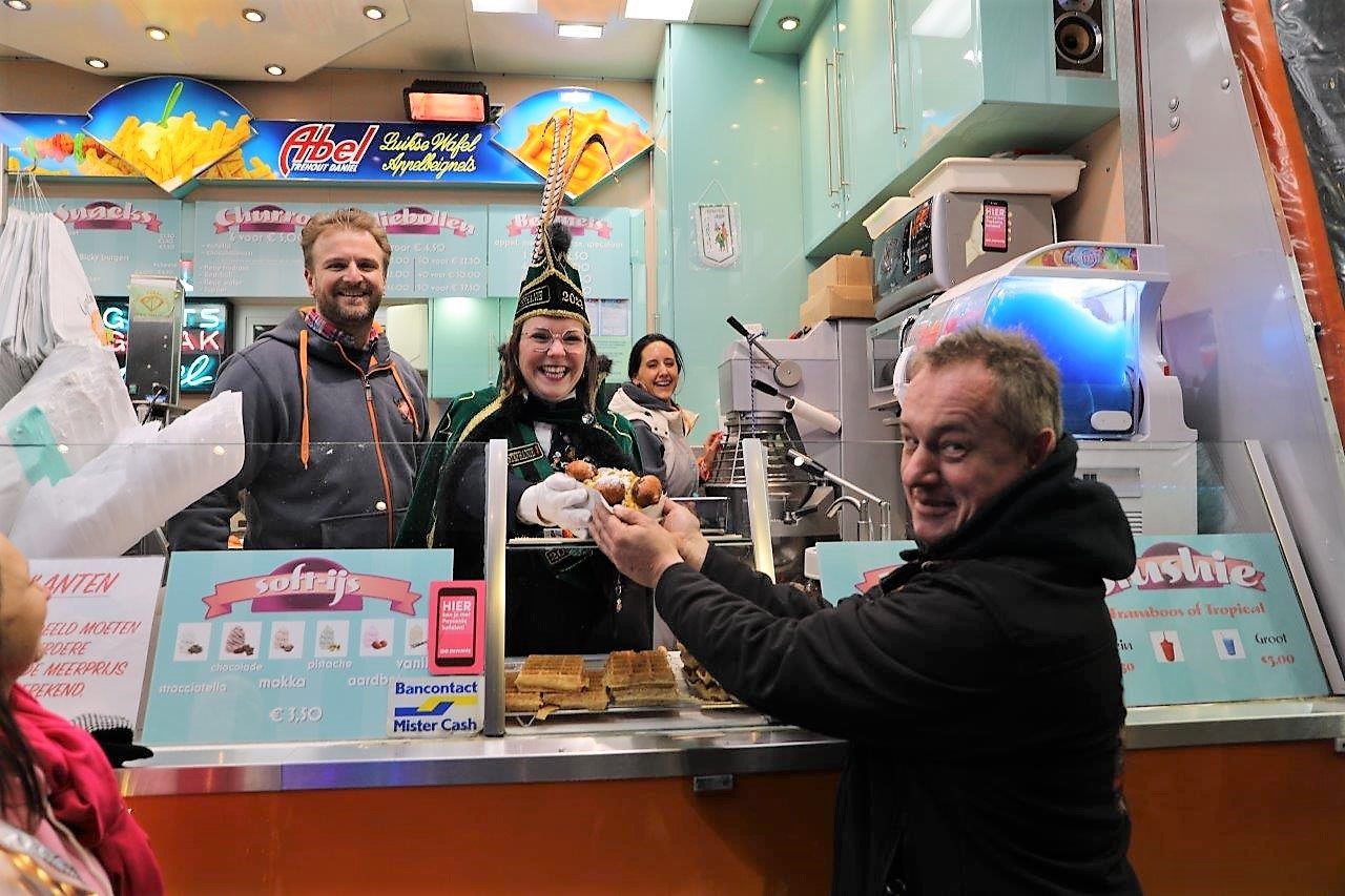 Nadien vond een receptie plaats, waarop Jean Trehout van Gents Gebak iedereen van oliebollen voorzag. William Severs keek als vertegenwoordiger van de foorreizigers toe en zag dat het goed was.