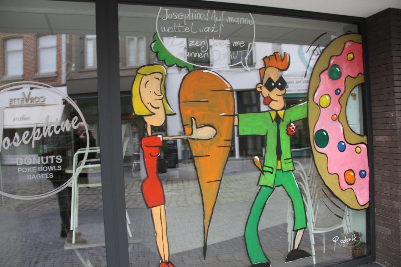 De komende dagen zal je nog meer schilderingen zien verschijnen in het straatbeeld. Op initiatief van de stad zullen ook een 30-tal handelszaken worden opgefleurd met ludieke tekeningen.