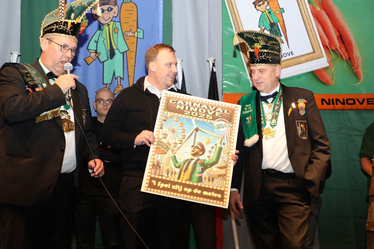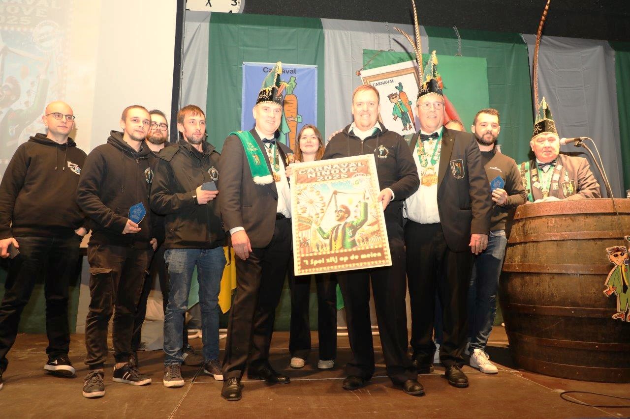 Pascal Carael en Giovanni Neckebroeck mochten namens de Koninklijke Karnavalraad tot slot van de openingsplechtigheid de winnaar bekendmaken van de affichewedstrijd voor carnaval 2025. Hiervoor hadden 8 carnavalisten 9 ontwerpen ingediend.