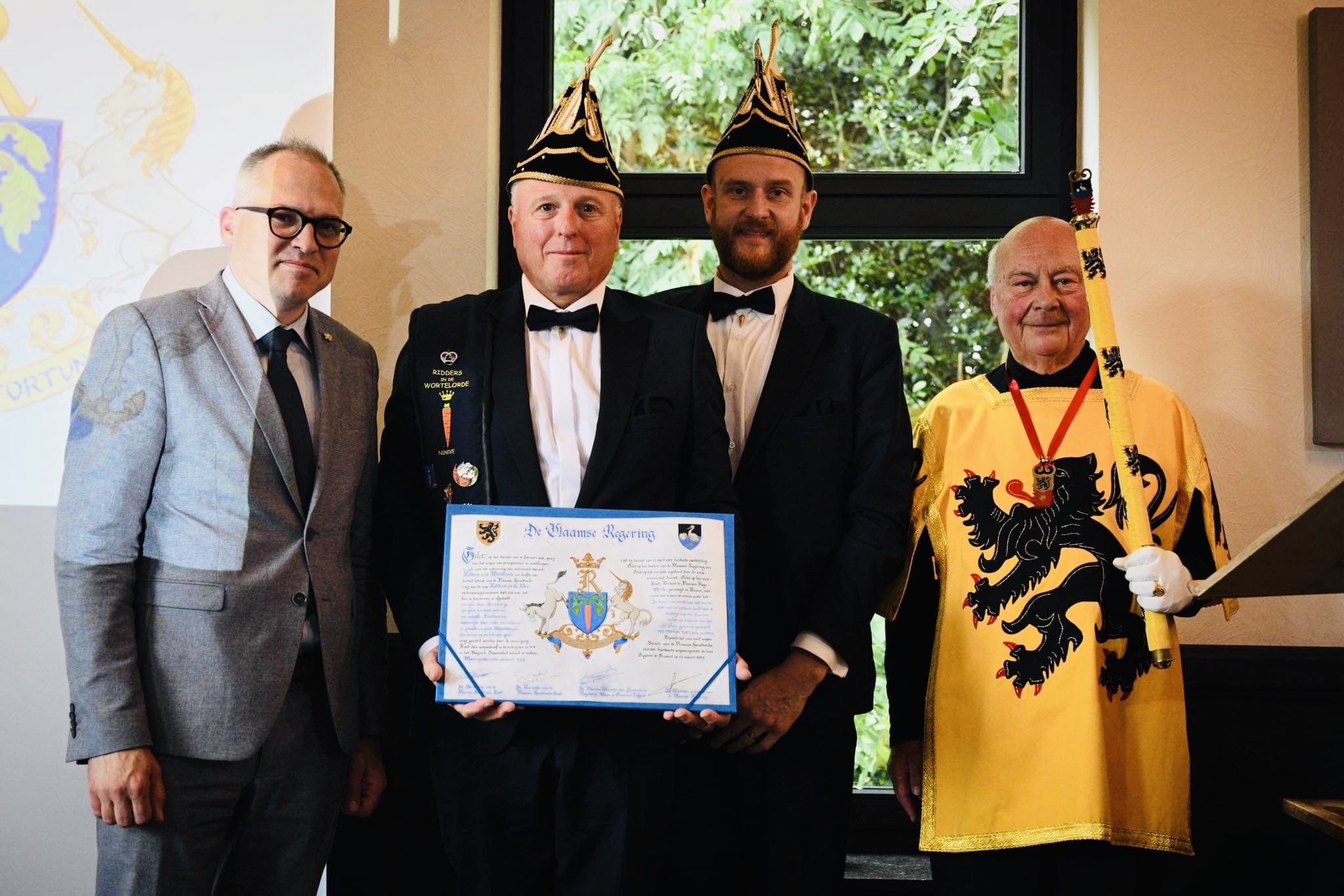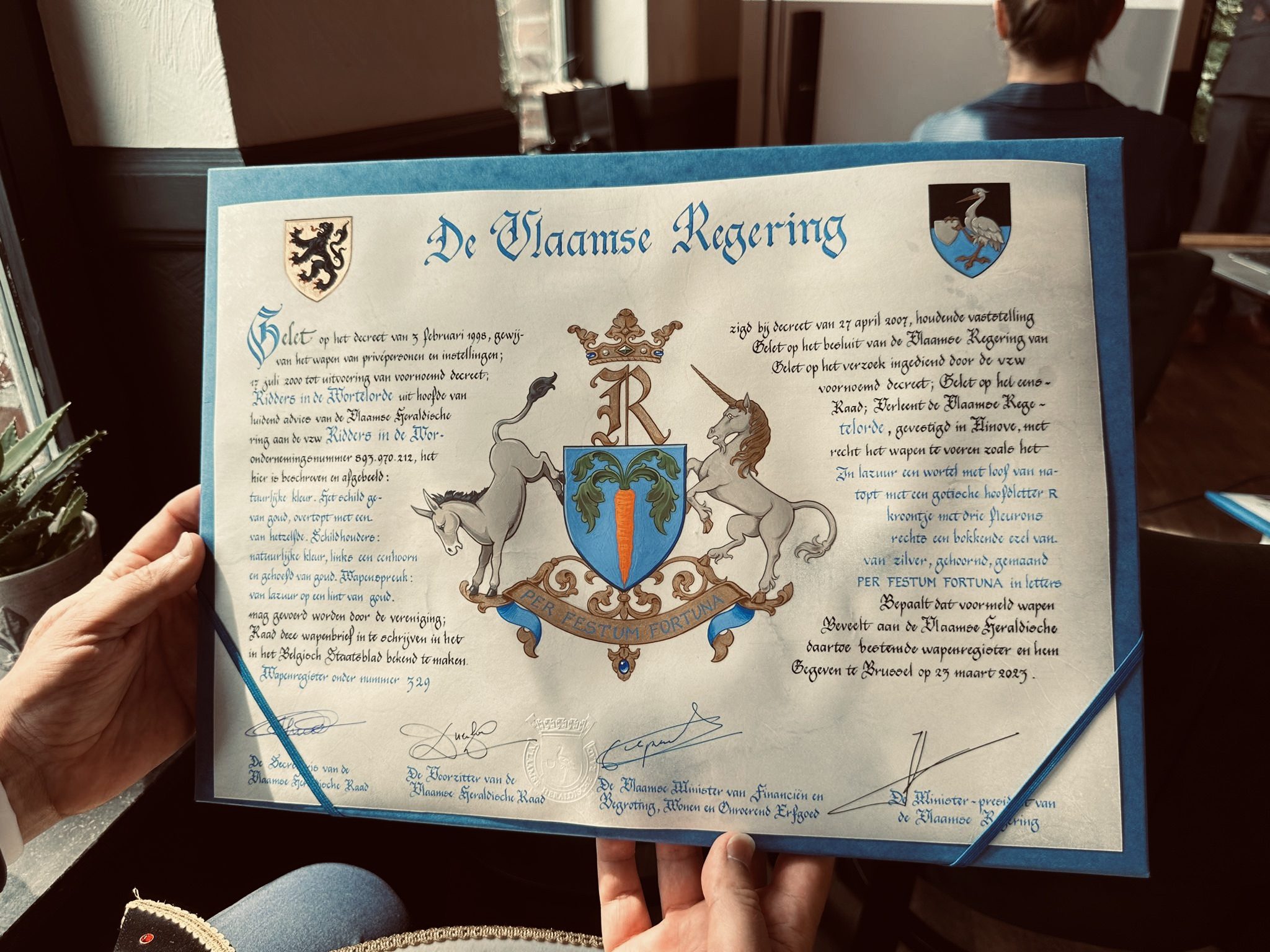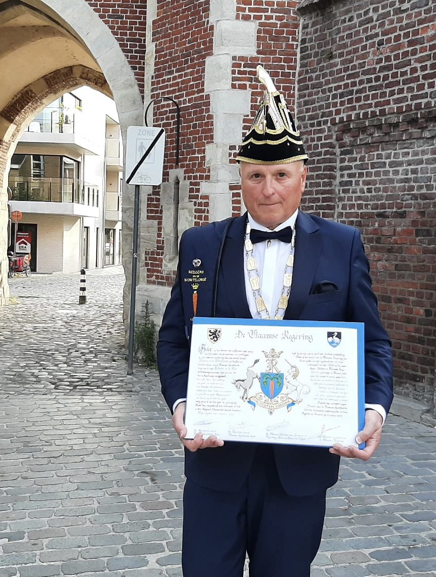 “In Vlaanderen zijn maar 25 instellingen met een dergelijke wapenbrief, de meeste zijn abdijen en processies. Carnaval heeft hier nu ook zijn intrede gedaan door toedoen van de Ridders in de Wortelorde.”