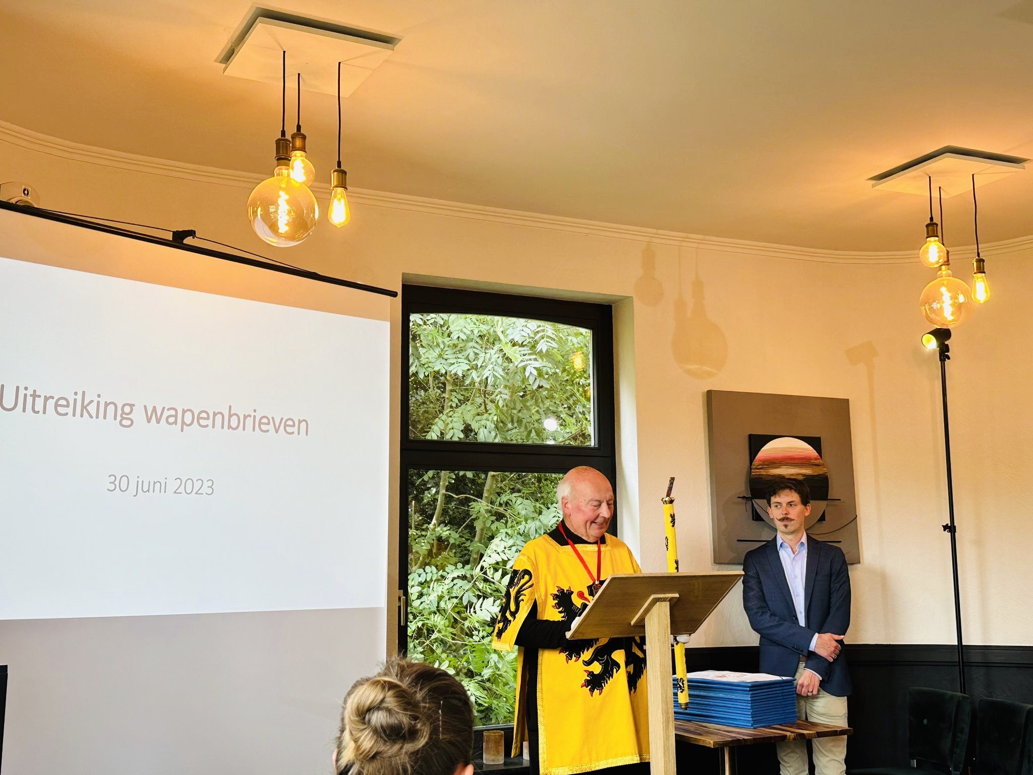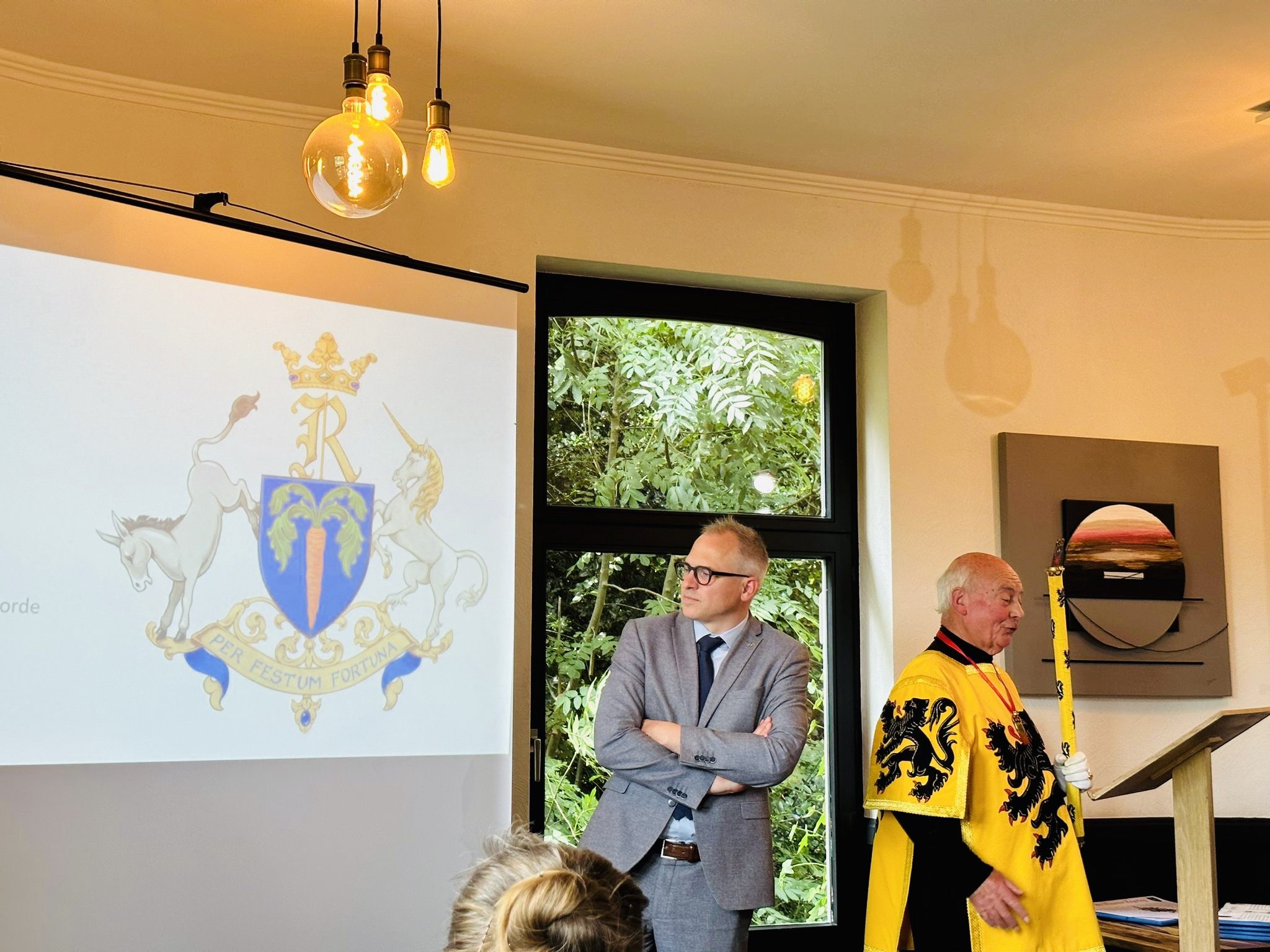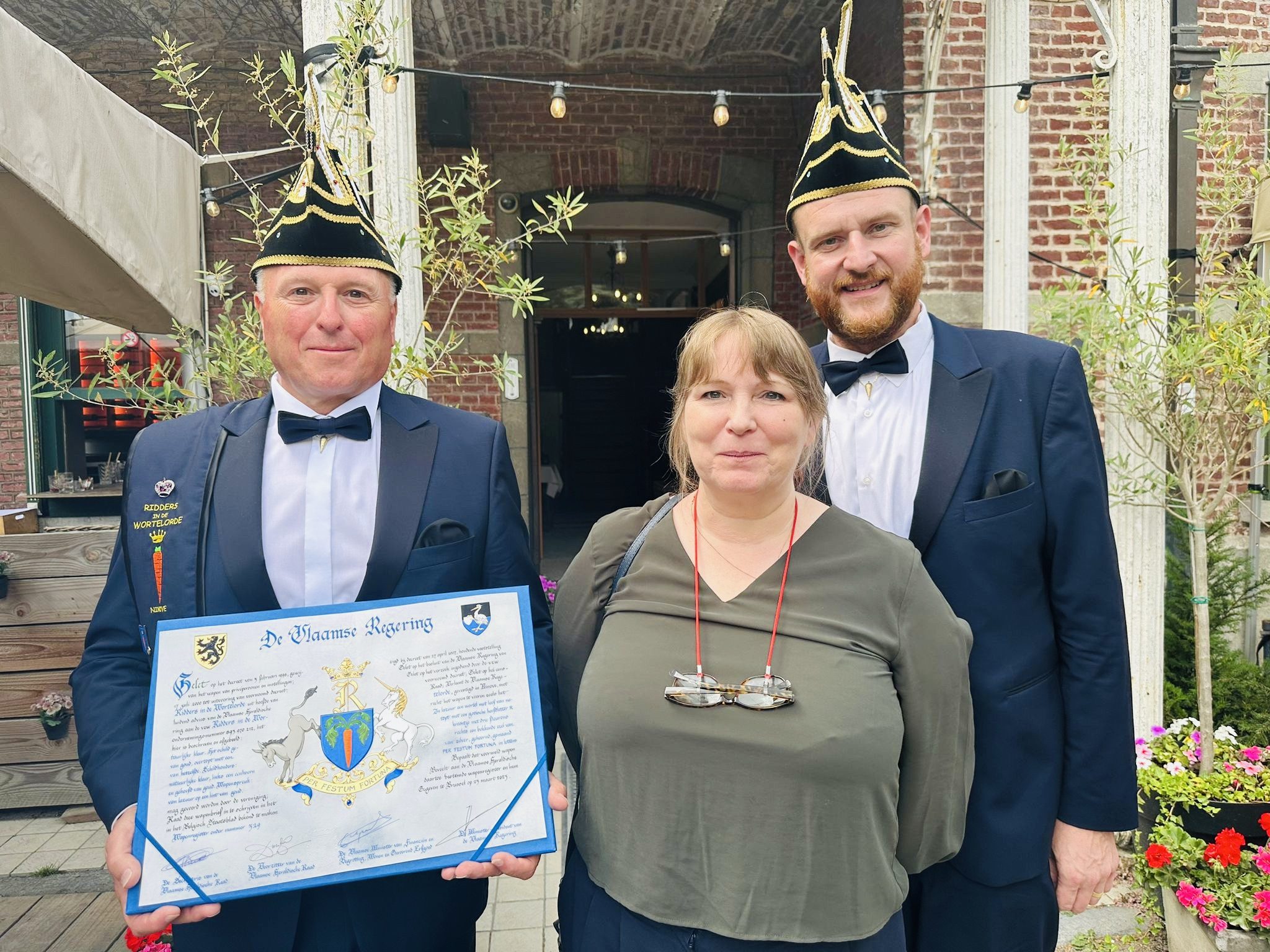 “In Vlaanderen zijn maar 25 instellingen met een dergelijke wapenbrief, de meeste zijn abdijen en processies. Carnaval heeft hier nu ook zijn intrede gedaan door toedoen van de Ridders in de Wortelorde.”